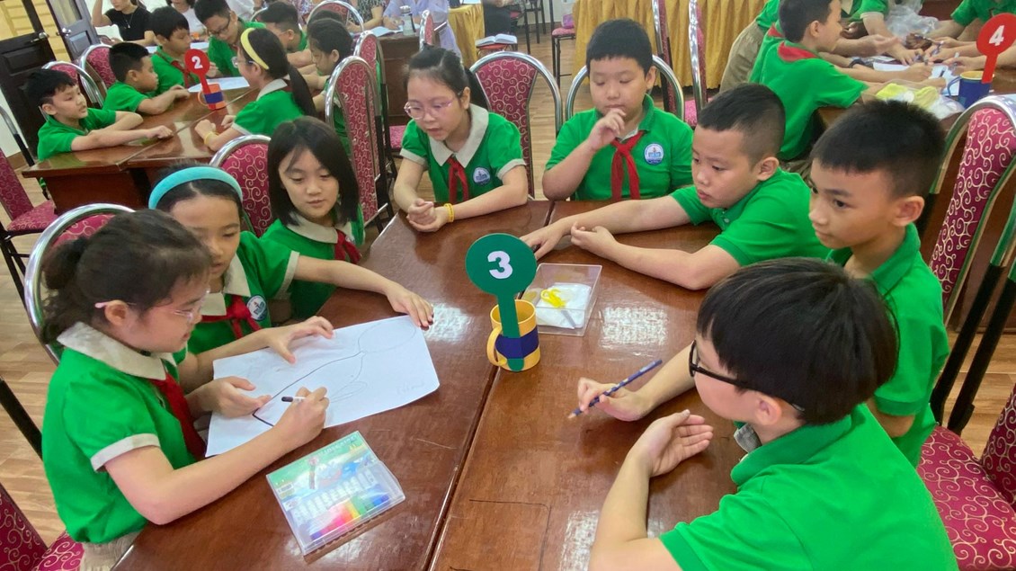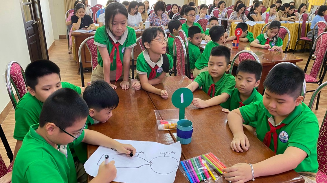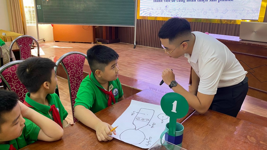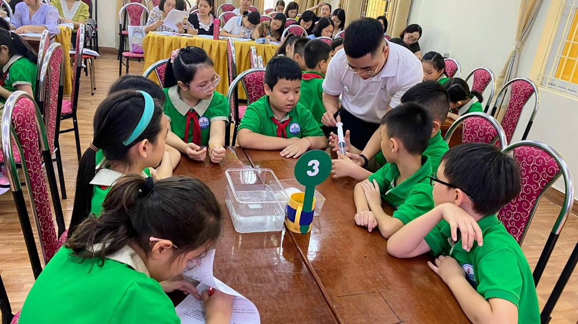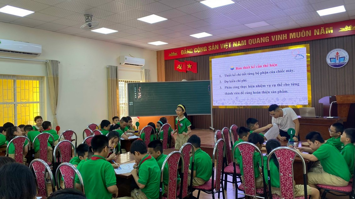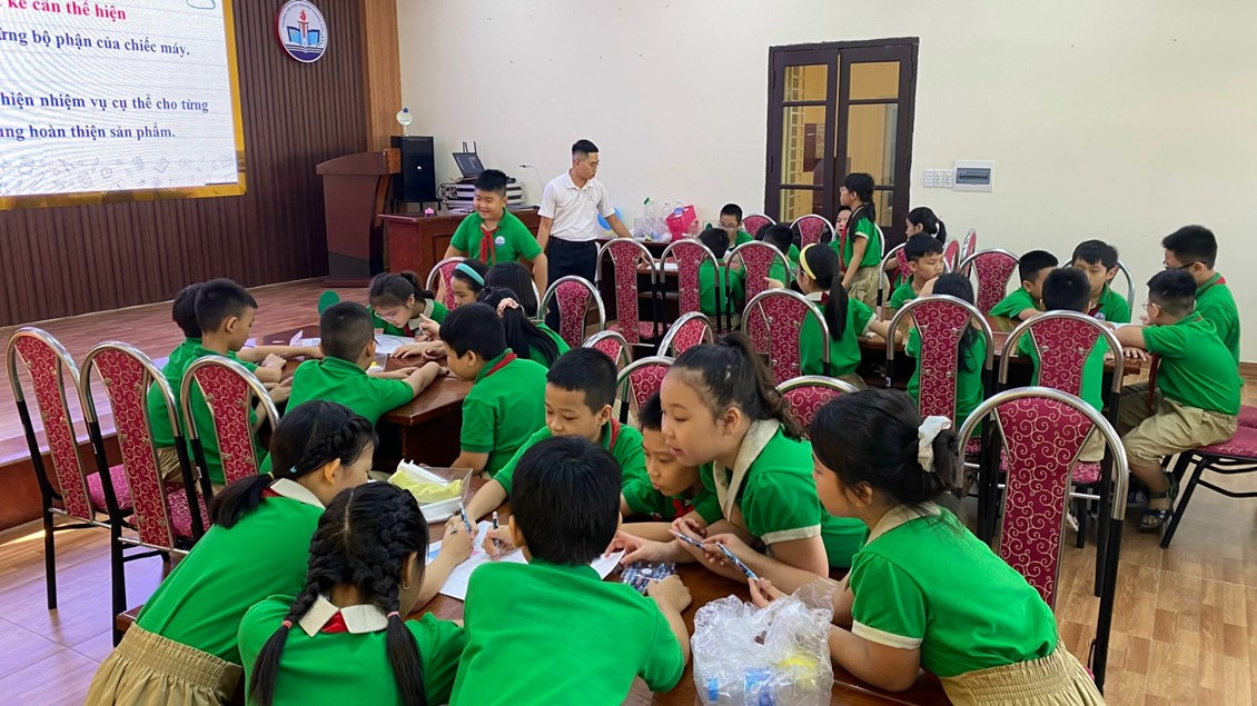 Tiết 2: Chuyên đề khối 4: Bài học STEM: "Máy bơm bóng bay" do thầy giáo Nguyễn Trần Phúc và học sinh lớp 4A4. Qua tiết học, học sinh nhận biết được sự có mặt của không khí, xác định được một số tính chất của không khí. Trong bài học này, học sinh sẽ làm được một dụng cụ để bơm bóng bằng cách sử dụng kiến thức đã học về các tính chất của không khí để tạo ra sản phẩm từ các vật liệu tái chế, thân thiện với môi trường. Học sinh tự tin khi đề xuất ý tưởng, chia sẻ kết quả làm việc, chia sẻ mục đích sử dụng mô hình; hợp tác, chia sẻ với bạn trong khi làm sản phẩm.