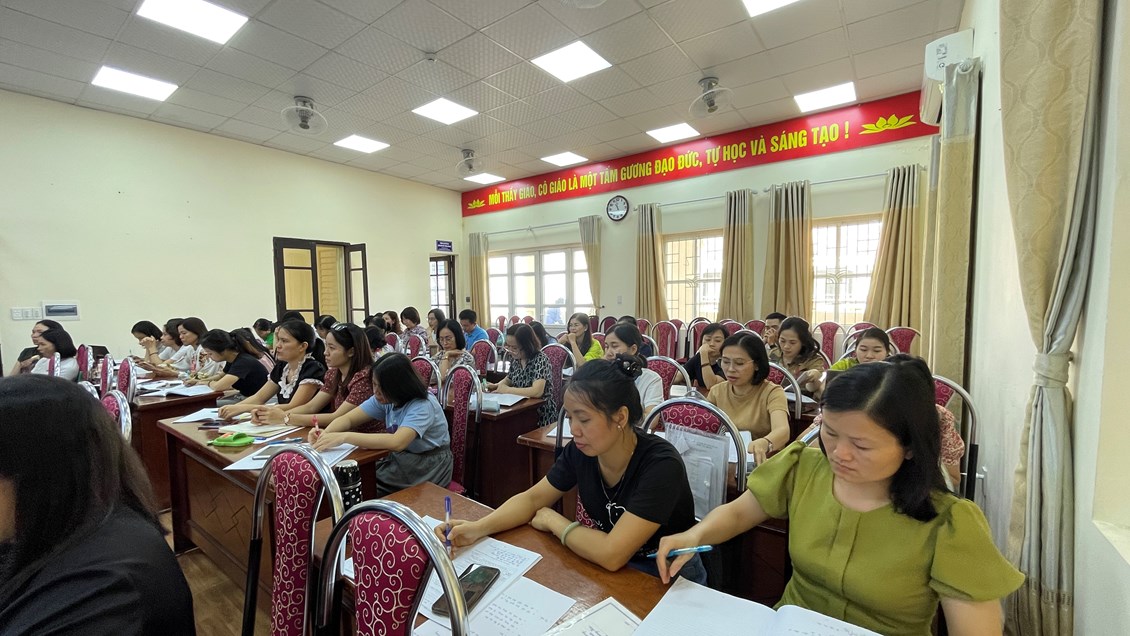 Tham gia buổi sinh hoạt chuyên môn có các đồng chí trong Ban giám hiệu và toàn thể các đồng chí giáo viên trong hội đồng sư phạm nhà trường.