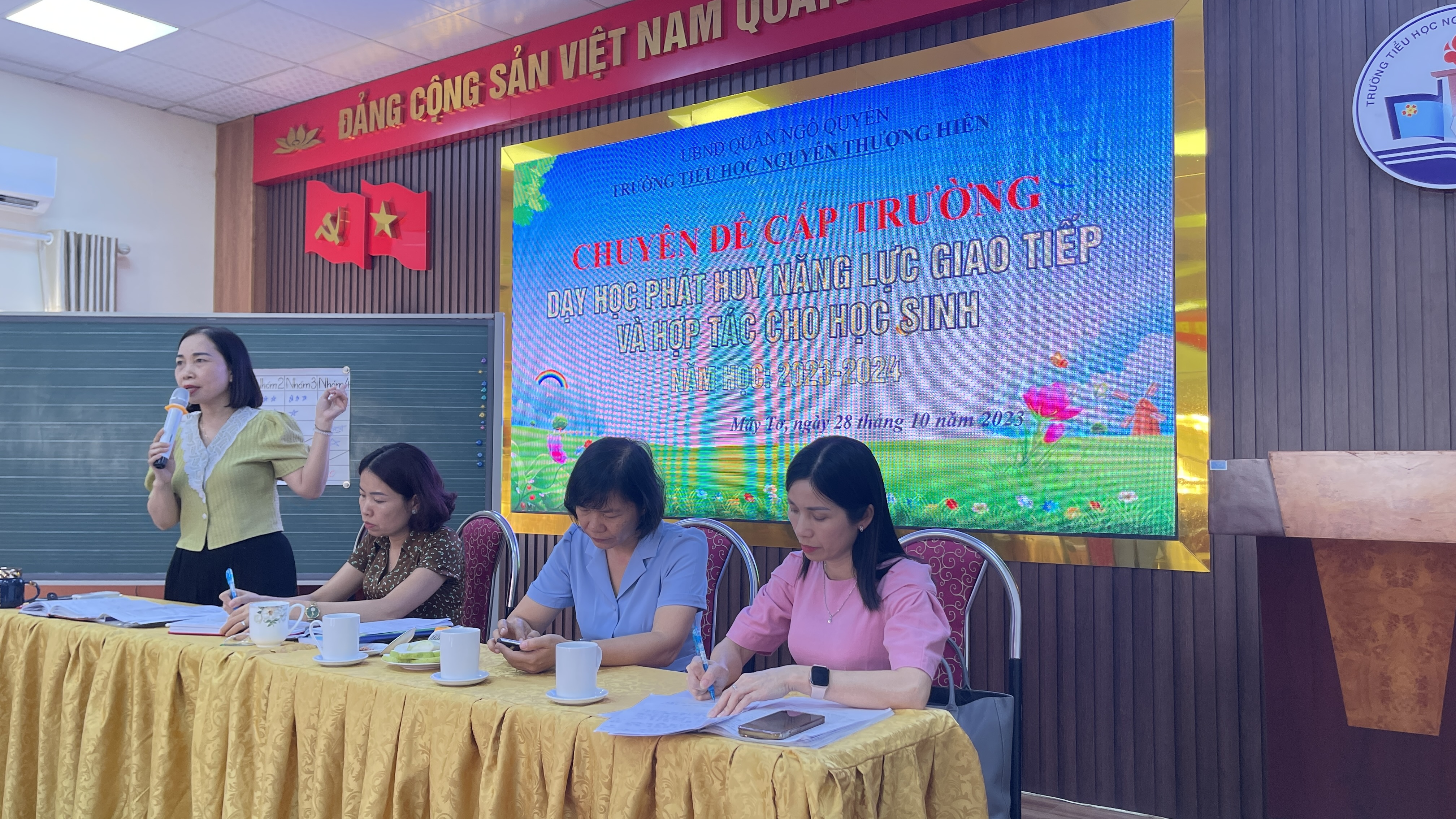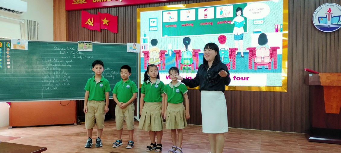 Chuyên đề cấp Trường tháng 10/2023 do tổ Tiếng Anh và tổ khối 4 thực hiện lên lớp. Sau phần giới thiệu, báo cáo chuyên đề, hội đồng đã dự giờ hai tiết dạy minh họa: