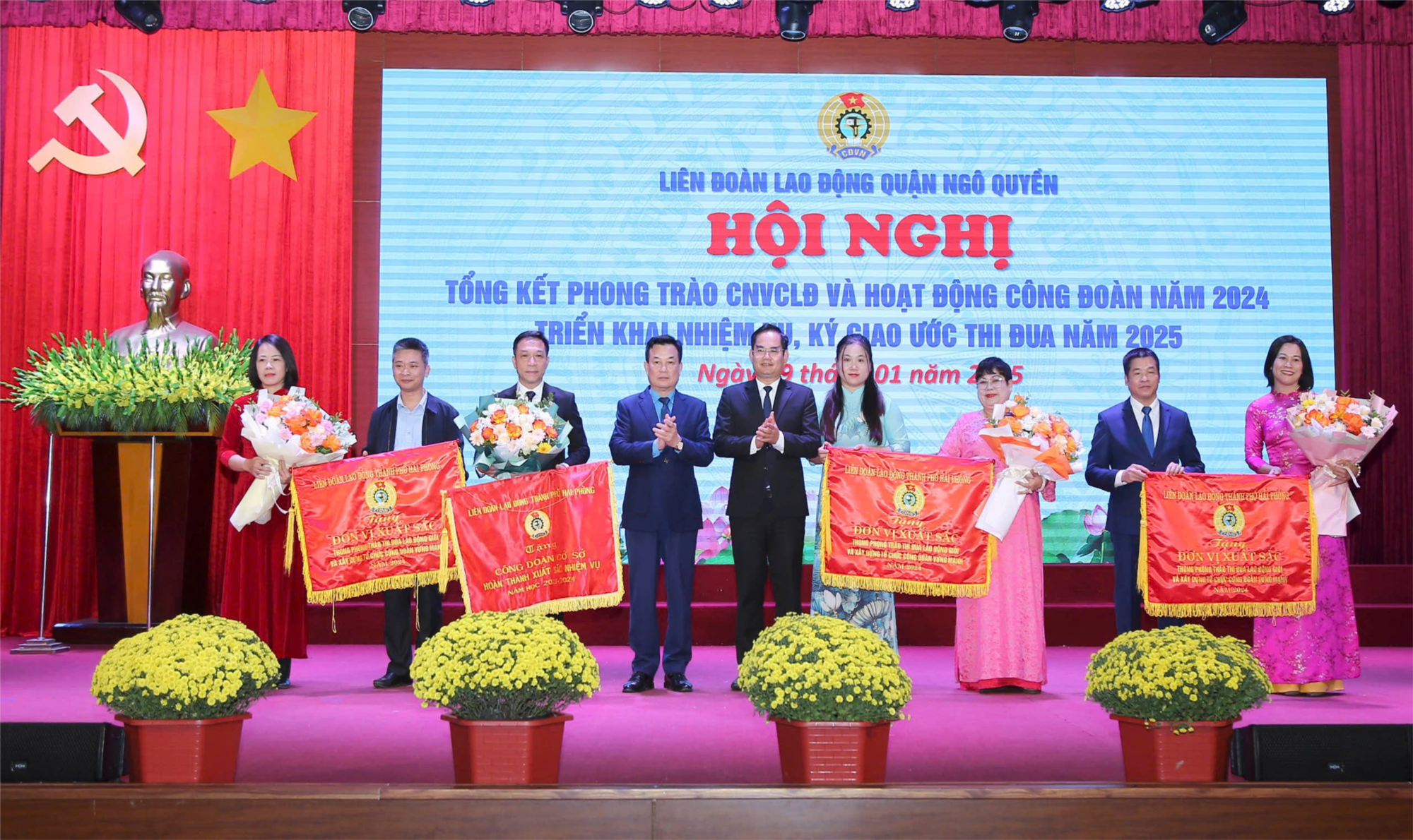 Chiều ngày 09/01/2025, Liên đoàn Lao động quận Ngô Quyền long trọng tổ chức Hội nghị Tổng kết phong trào CNVCLĐ và hoạt động công đoàn năm 2024, đồng thời triển khai nhiệm vụ và ký giao ước thi đua cho năm 2025.