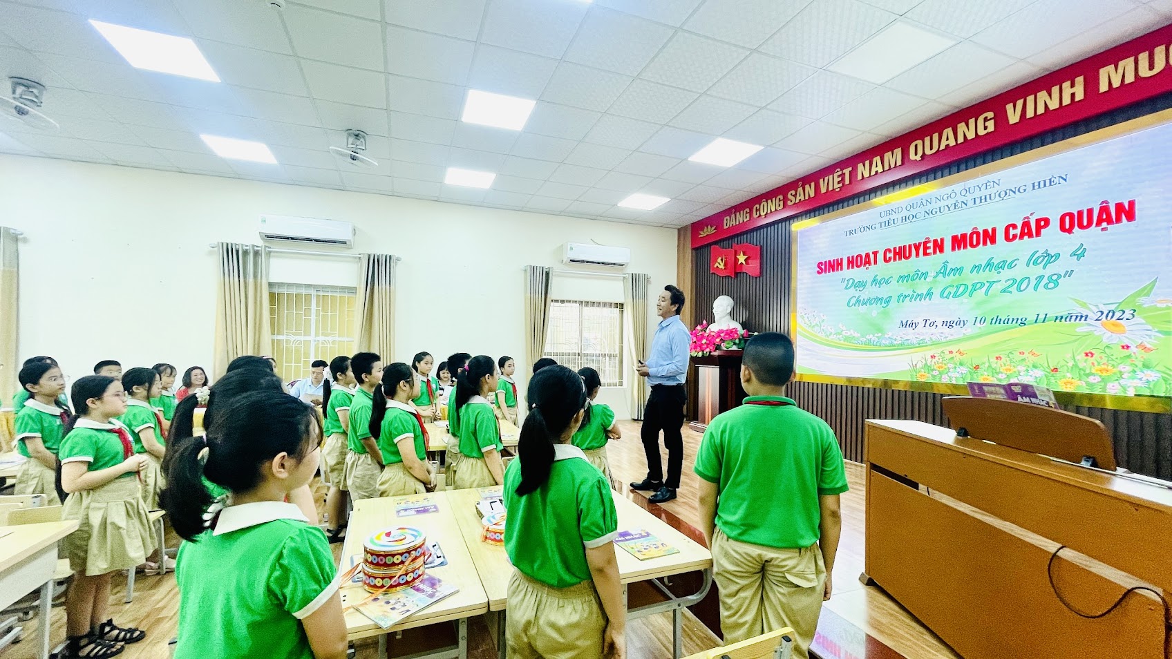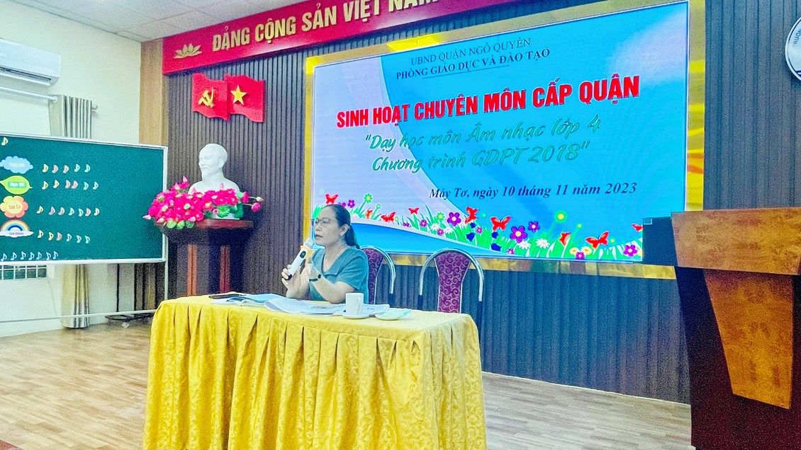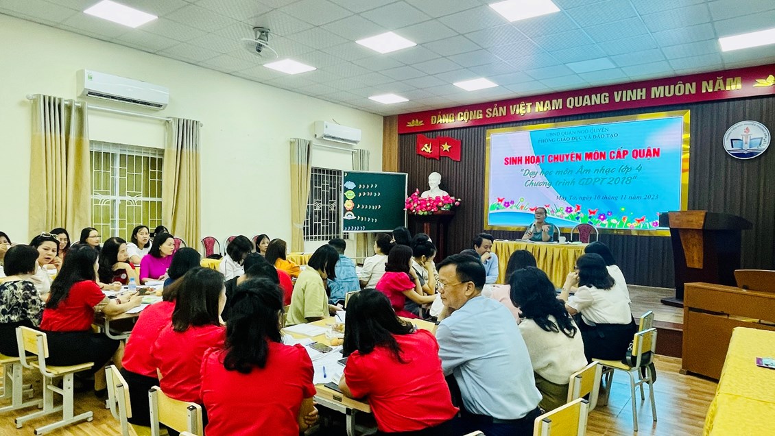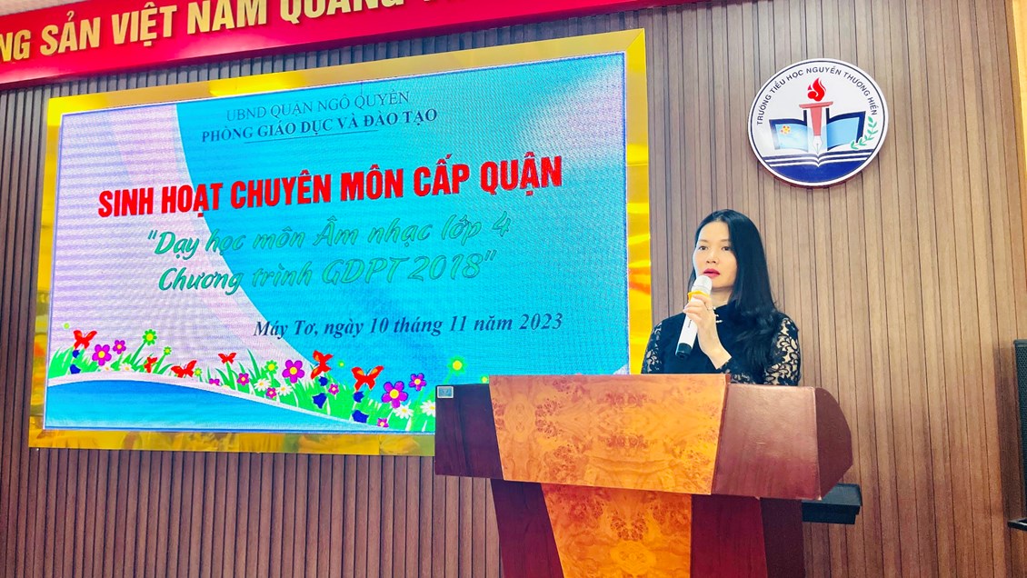Thực hiện chỉ đạo của Phòng GD&ĐT quận Ngô Quyền về việc tổ chức Sinh hoạt chuyên môn cấp quận năm học 2023-2024, chiều ngày 10/11/2023, trường Tiểu học Nguyễn Thượng Hiền đã tham gia lên lớp Sinh hoạt chuyên môn cấp quận "Dạy học môn Âm nhạc lớp 4 Chương trình Giáo dục phổ thông 2018".