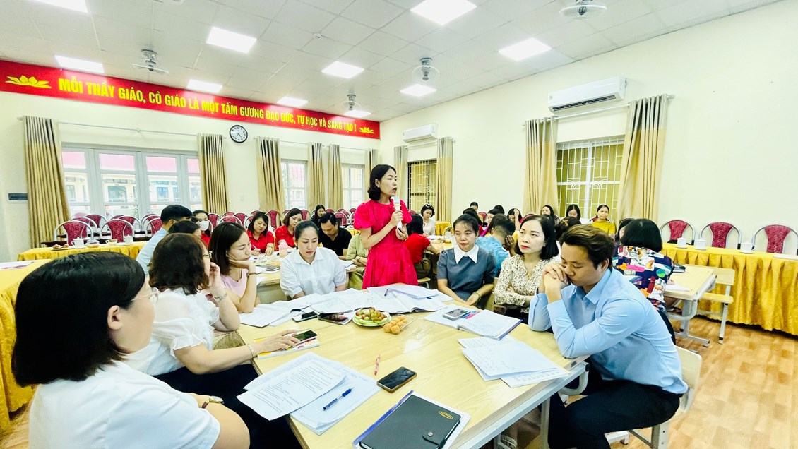 Sau tiết dạy, các thầy cô giáo đã có buổi trao đổi, thảo luận sôi nổi nhằm giải đáp những vướng mắc về việc triển khai dạy môn Âm nhạc lớp 4 theo chương trình GDPT 2018.