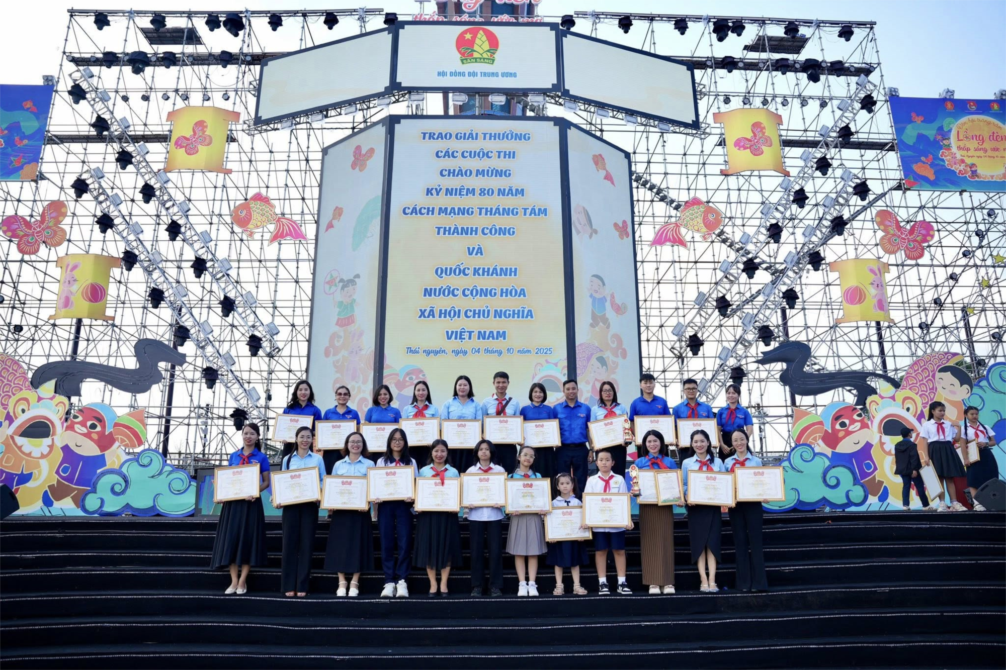 Chiều ngày 04/10/2025, tại Quảng trường Võ Nguyên Giáp, phường Phan Đình Phùng, tỉnh Thái Nguyên, Hội đồng Đội Trung ương đã long trọng tổ chức chương trình Tổng kết và Trao giải thưởng các cuộc thi chào mừng kỷ niệm 80 năm Cách mạng tháng Tám (1945–2025) và Quốc khánh nước Cộng hoà Xã hội Chủ nghĩa Việt Nam (02/9/1945 – 02/9/2025).