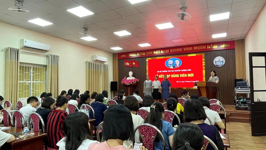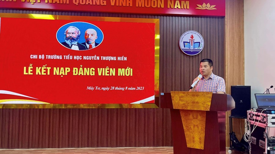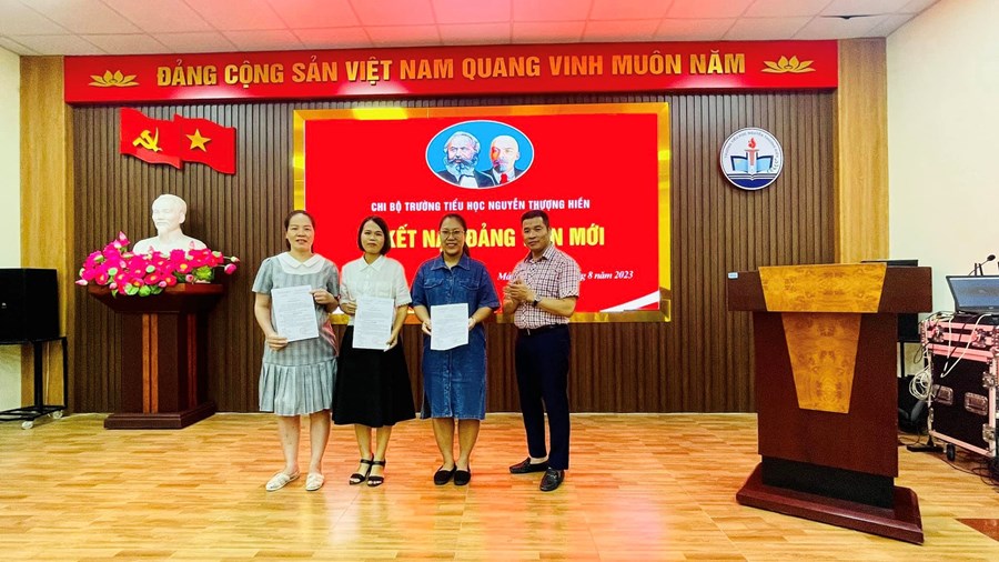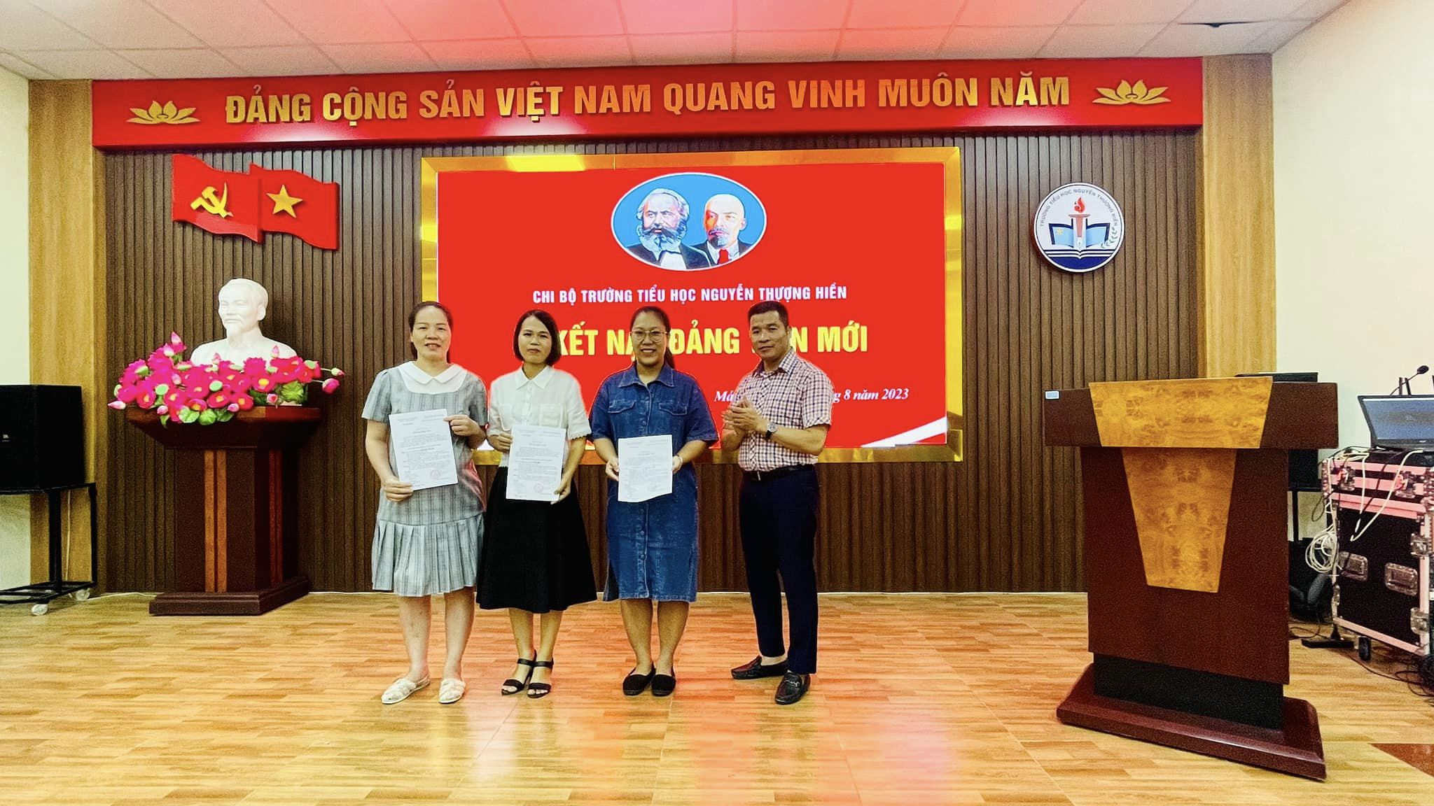 Thực hiện sự chỉ đạo của Đảng ủy phường Máy Tơ, Nghị quyết Đại hội Chi bộ trường Tiểu học Nguyễn Thượng Hiền về việc phát triển Đảng viên. Ngày 28/08/2023, Chi bộ trường Tiểu học Nguyễn Thượng Hiền đã long trọng tổ chức lễ kết nạp Đảng viên mới đối với 3 quần chúng ưu tú: Lê Thị Mến, Đặng Thị Quyền, Bùi Phương Thảo.
