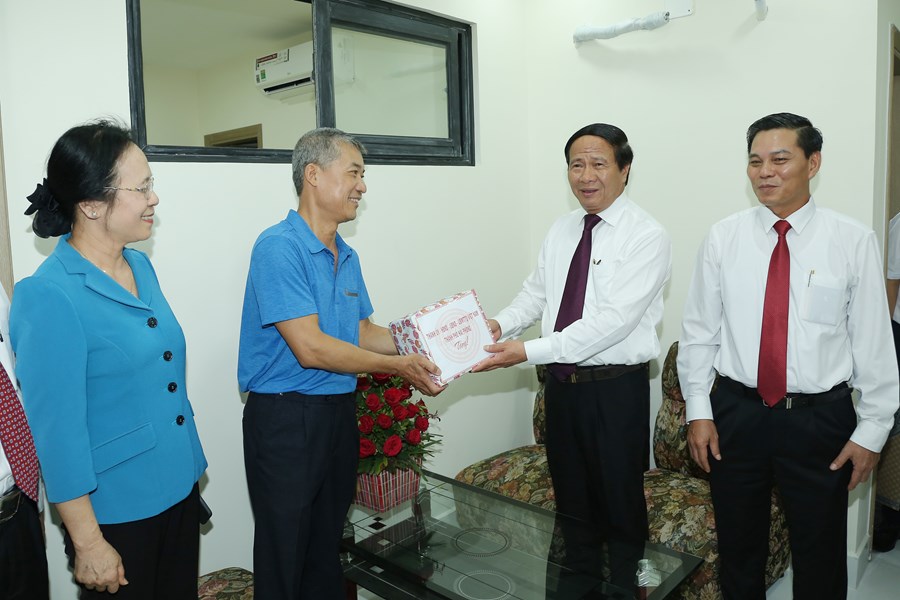Đồng chí Lê Văn Thành thăm tặng quà hộ gia đình trở về chung cư HH4 Đồng Quốc Bình.