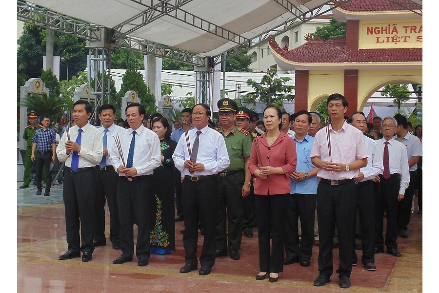 Đồng chí Lê Văn Thành dâng hương tại Nghĩa trang liệt sĩ Quận Ngô Quyền