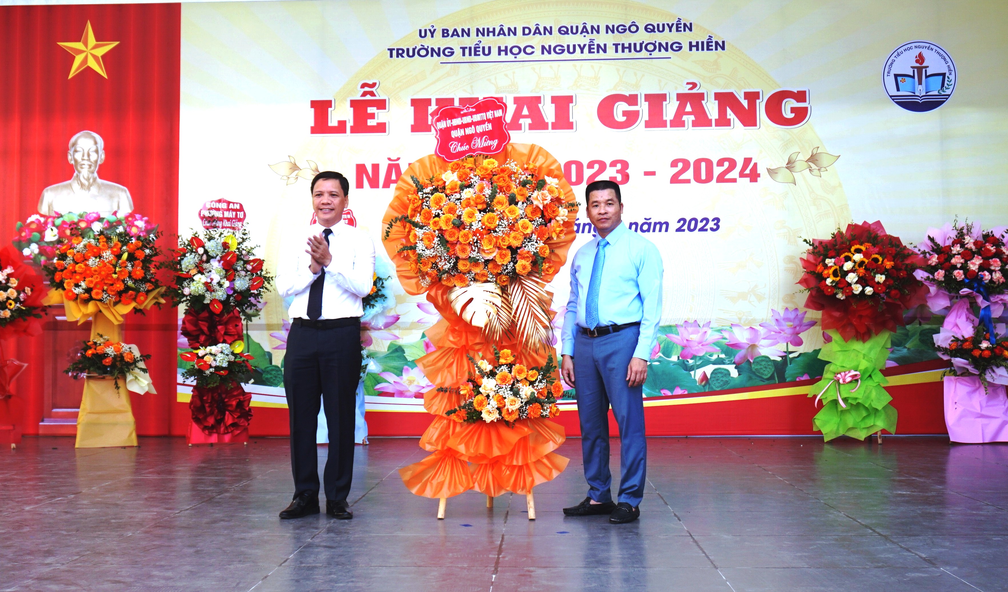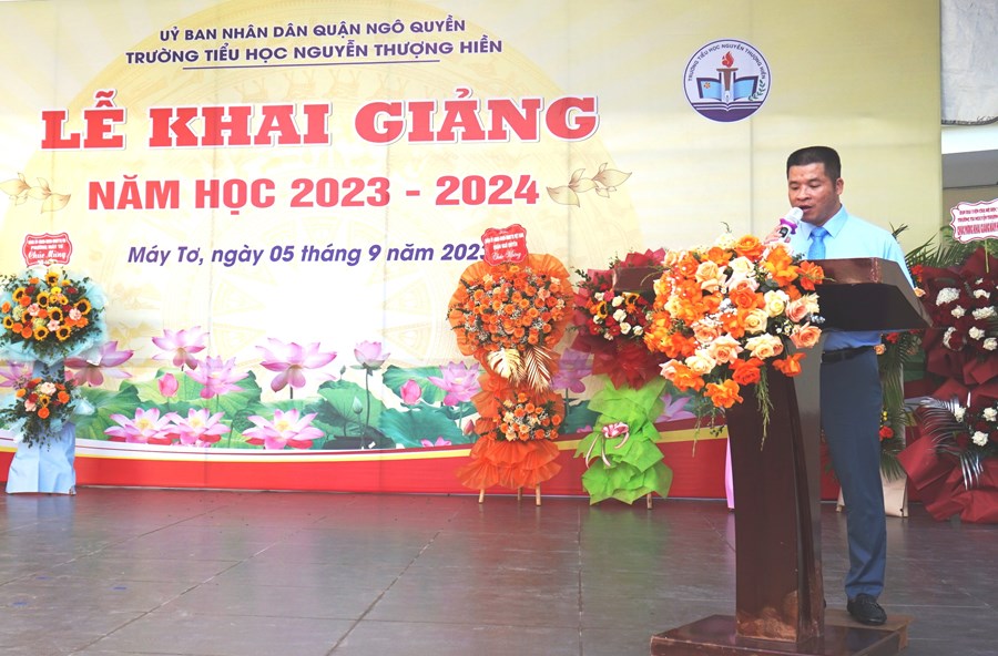 Trong Lễ Khai giảng, Ông Nguyễn Quốc Thái đại diện cho các vị khách quý đã tặng hoa chúc mừng nhà trường thể hiện sự quan tâm của các cấp lãnh đạo Đảng ủy, HĐND, UBND Quận Ngô Quyền dành cho thầy trò trường Tiểu học Nguyễn Thượng Hiền. Điều đó đã tiếp thêm sức mạnh to lớn, cổ vũ cho tinh thần quyết tâm thi đua dạy tốt, học tốt của thầy và trò nhà trường trước thềm năm học mới.