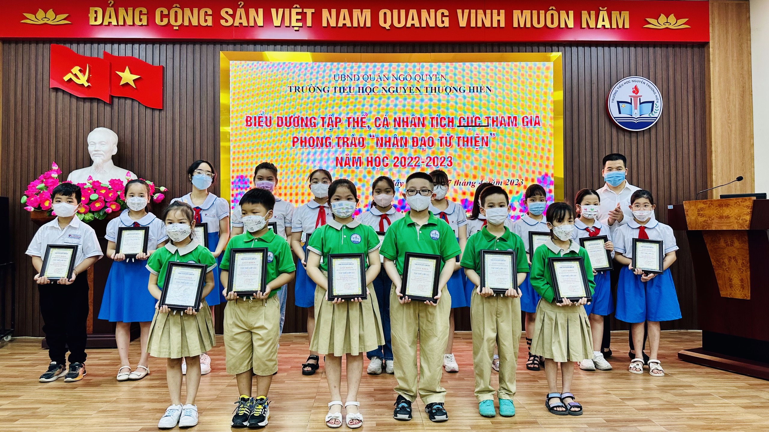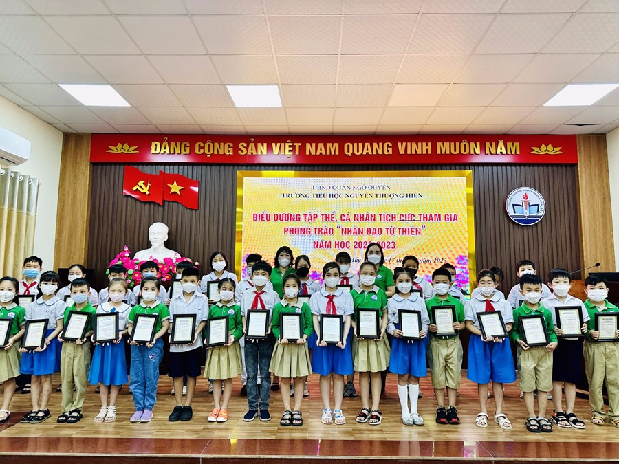 Đây là một trong những nội dung mà đã được các bậc phụ huynh, các em học sinh, các thầy cô giáo trường TH Nguyễn Thượng Hiền tích cực hưởng ứng tham gia. Trong những năm qua các hoạt động nhân đạo từ thiện đạt nhiều kết quả đáng khích lệ và được các cấp ghi nhận đánh giá cao. Nhà trường đã nhận bằng khen, giấy khen của Hội đồng Đội thành phố về hoạt động Tình nguyện mùa đông, hội chữ thập đỏ Thành phố về phong trào Nuôi lợn siêu trọng.
