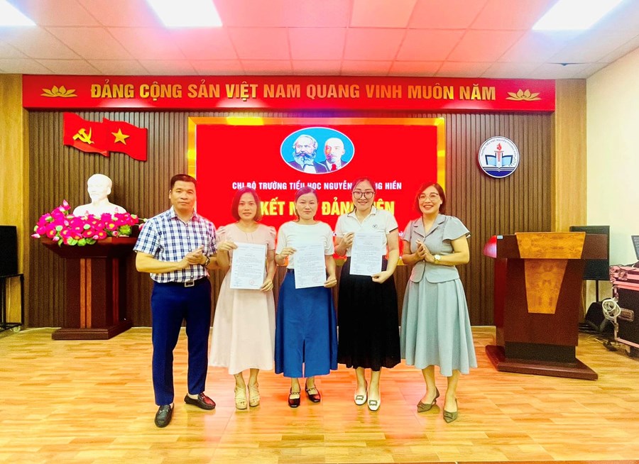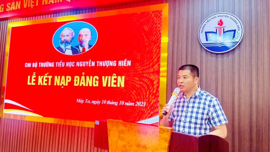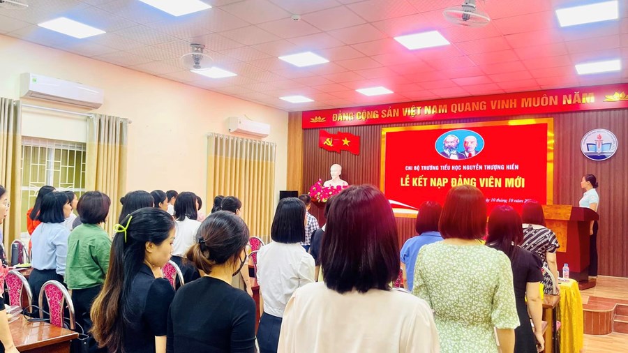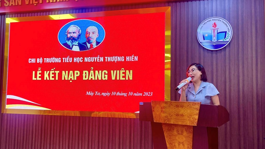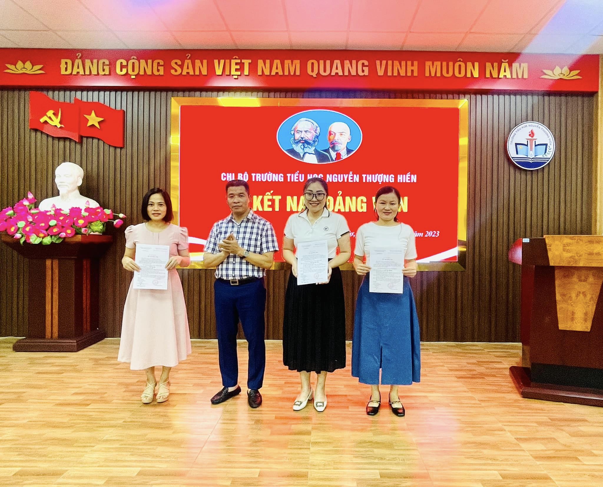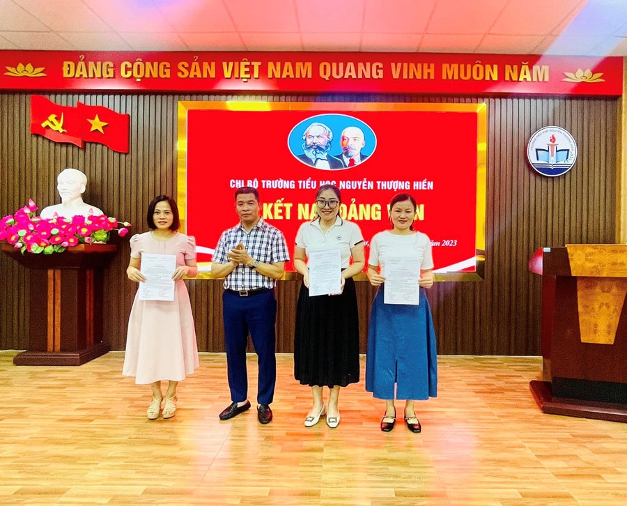 Thực hiện sự chỉ đạo của Đảng ủy phường Máy Tơ, Nghị quyết Đại hội Chi bộ trường Tiểu học Nguyễn Thượng Hiền về việc phát triển Đảng viên. Chiều ngày 10/10/2023, Chi bộ trường Tiểu học Nguyễn Thượng Hiền đã long trọng tổ chức lễ kết nạp Đảng viên mới đối với 3 quần chúng ưu tú: Trần Thị Hương, Trần Thị Sợi, Sầm Thị Hoa Hằng.
