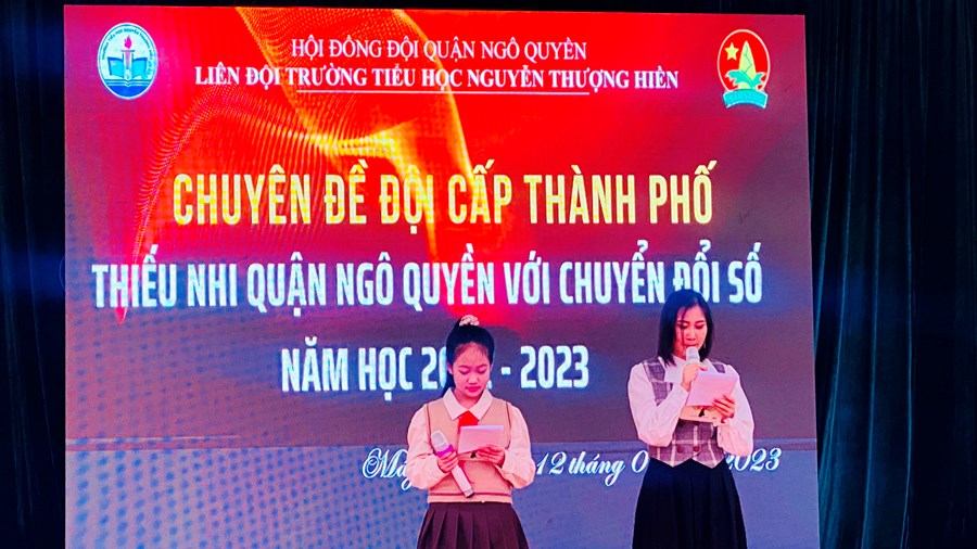 (TH-NTH)- Thực hiện chương trình công tác Đội và phong trào thiếu nhi năm học 2022-2023; Thực hiện chỉ đạo của Hội đồng đội Quận Ngô Quyền về việc hưởng ứng các hoạt động chuyển đổi số quốc gia về triển khai chương trình Rèn luyện đội viên qua App "Làm việc tốt"; với mong muốn đưa chuyển đổi số lan toả trong trường học, giúp các em tiếp cận với không gian, môi trường số thật ý nghĩa, thiết thực và phù hợp. Sáng ngày 12/01/2023, liên đội trường Tiểu học Nguyễn Thượng Hiền đã long trọng tổ chức chuyên đề Đội cấp Thành phố “Thiếu nhi Quận Ngô Quyền với chuyển đổi số”.