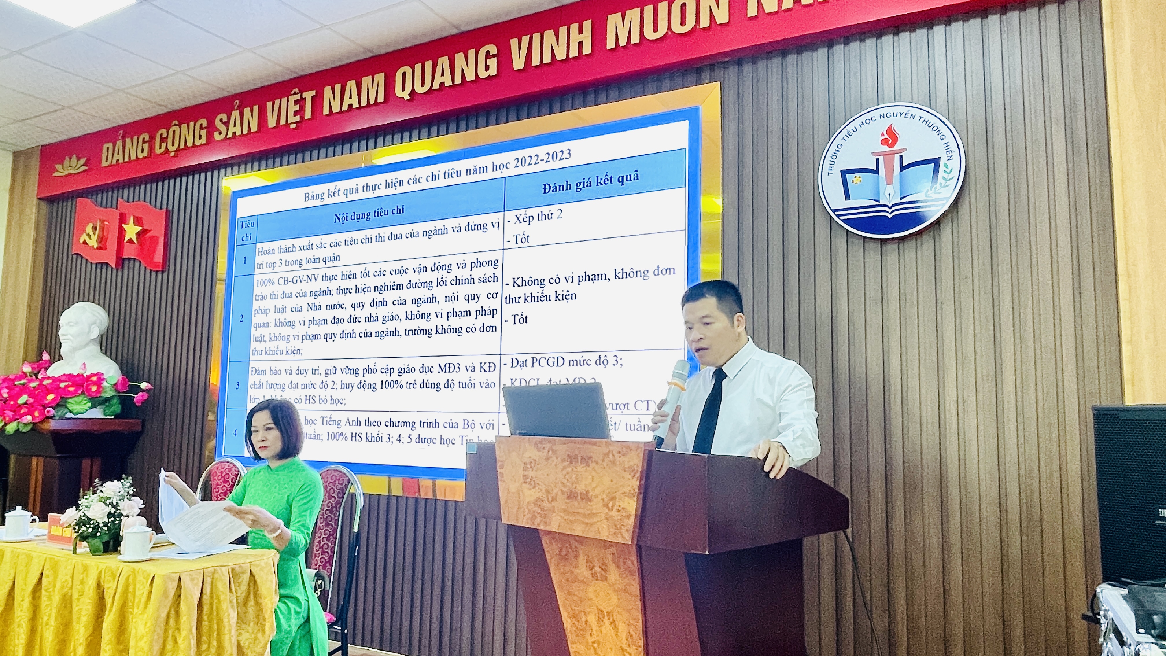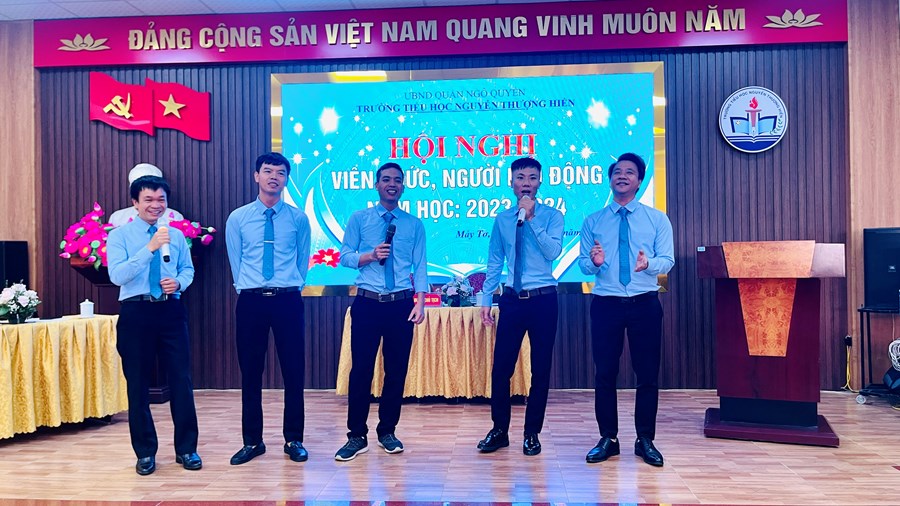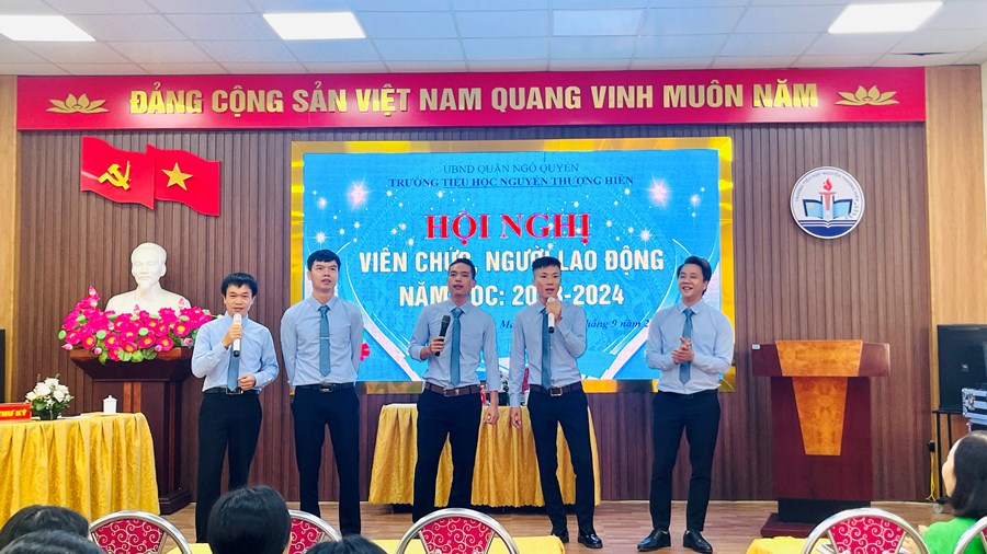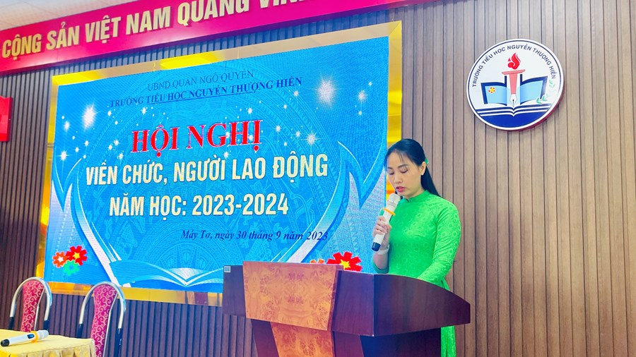 Thực hiện công văn chỉ đạo của Phòng Giáo dục và Đào tạo, Liên đoàn Lao động Quận Ngô Quyền, sáng 30/09/2023, trường Tiểu học Nguyễn Thượng Hiền đã long trọng tổ chức Hội nghị viên chức, người lao động năm học 2023-2024 nhằm đánh giá kết quả thực hiện Nghị Quyết hội nghị năm học 2022-2023 và triển khai kế hoạch thực hiện nhiệm vụ năm học 2023-2024.