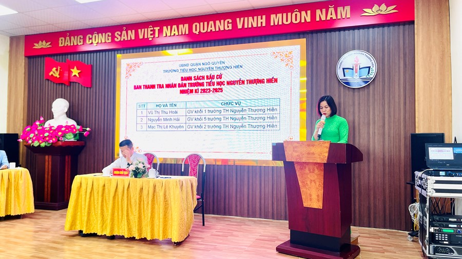 Hội nghị viên chức, người lao động trường Tiểu học Nguyễn Thượng Hiền năm học 2023-2024 đã thành công tốt đẹp. Chúc các đồng chí CBGV - NV nhà trường luôn đoàn kết, phát huy sức mạnh, trí tuệ tập thể cùng phấn đấu để hoàn thành thắng lợi các nhiệm vụ, chỉ tiêu đã đề ra.