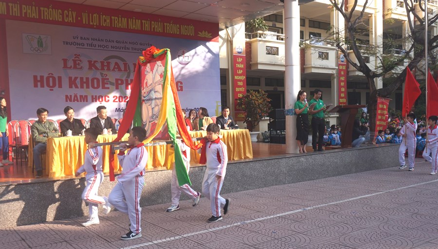 Lễ Khai mạc Hội Khỏe Phù Đổng của thầy và trò nhà trường vinh dự chào đón các quý vị đại biểu:Ông Nguyễn Văn Thía, Phó giám đốc Trung tâm Văn hóa Thông tin và Thể thao quận Ngô Quyền; Ông Nguyễn Đức Hợp, Chuyên viên phòng Giáo dục và Đào tạo quận Ngô Quyền; Bà Đỗ Thị Thu Thảo, Phó Chủ tịch UBND phường Máy Tơ; Bà Đinh Thị Diệu Liên, Bí thư Đoàn phường Máy Tơ; Ông Nguyễn Ngọc, Trưởng Ban Đại diện Hội Cha mẹ học sinh nhà trường; Thầy giáo Trần Nguyên Lâm, Bí Thư chi bộ, Hiệu trưởng nhà trường cùng tập thể Hội đồng sư phạm nhà trường.