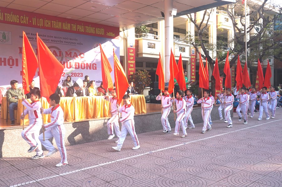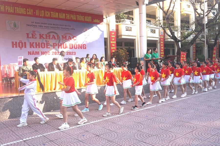 Thực hiện hướng dẫn số 46/HKH-PGDĐT của PGD&ĐT Quận Ngô Quyền về việc tổ chức khai mạc Hội khỏe Phù Đổng năm học 2022-2023; Thực hiện Kế hoạch hoạt động thể dục thể thao năm học 2022-2023 của nhà trường;