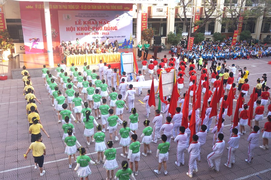 Thi đua lập thành tích Chào mừng kỷ niệm 78 năm ngày thành lập Quân đội nhân dân Việt Nam (22/12/1944 – 22/12/2022) và ngày Quốc phòng toàn dân; Hưởng ứng Đại hội thể thao toàn quốc lần thứ IX, Chúc mừng Đại hội Đại biểu Đoàn TNCS Hồ Chí Minh lần thứ III, nhiệm kỳ 2022-2027 thành công tốt đẹp. Nhằm giúp cho học sinh hiểu về tầm quan trọng của việc rèn luyện thể chất với lứa tuổi các em. Sáng 16/12/2022, trường Tiểu học Nguyễn Thượng Hiền tổ chức khai mạc Hội khỏe Phù Đổng nhằm biểu dương lực lượng và bồi dưỡng vận động viên các môn TDTT.