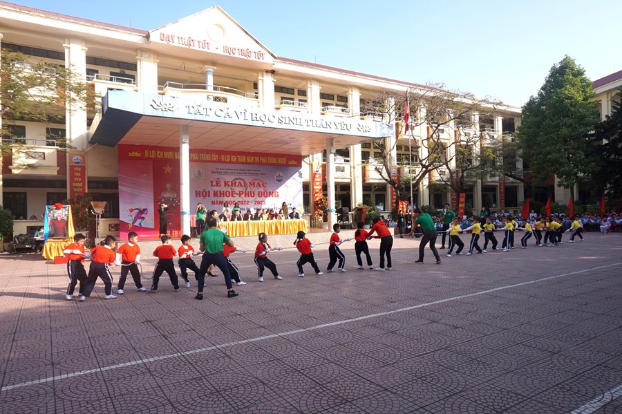 Buổi Lễ khai mạc Hội khỏe Phù Đổng được tổ chức đúng điều lệ, mang tính giáo dục, an toàn, tiết kiệm, hiệu quả thu hút được đông đảo học sinh tham gia. Với các màn đồng diễn nhảy hiện đại, thể dục giữa giờ tay không, nhảy dân vũ của các em học sinh khối 4+5. Trò chơi Ném bóng trúng đích thể hiện sự tích cực, hào hứng của Hs khối 3. Các em HS khối 2 vô cùng đáng yêu đã thể hiện màn trình diễn thời trang đặc sắc và ấn tượng. Cuối cùng, trò chơi Kéo co đầy kịch tính được 4 đội chơi của các em khối 1 thể hiện vô cùng tự tin.