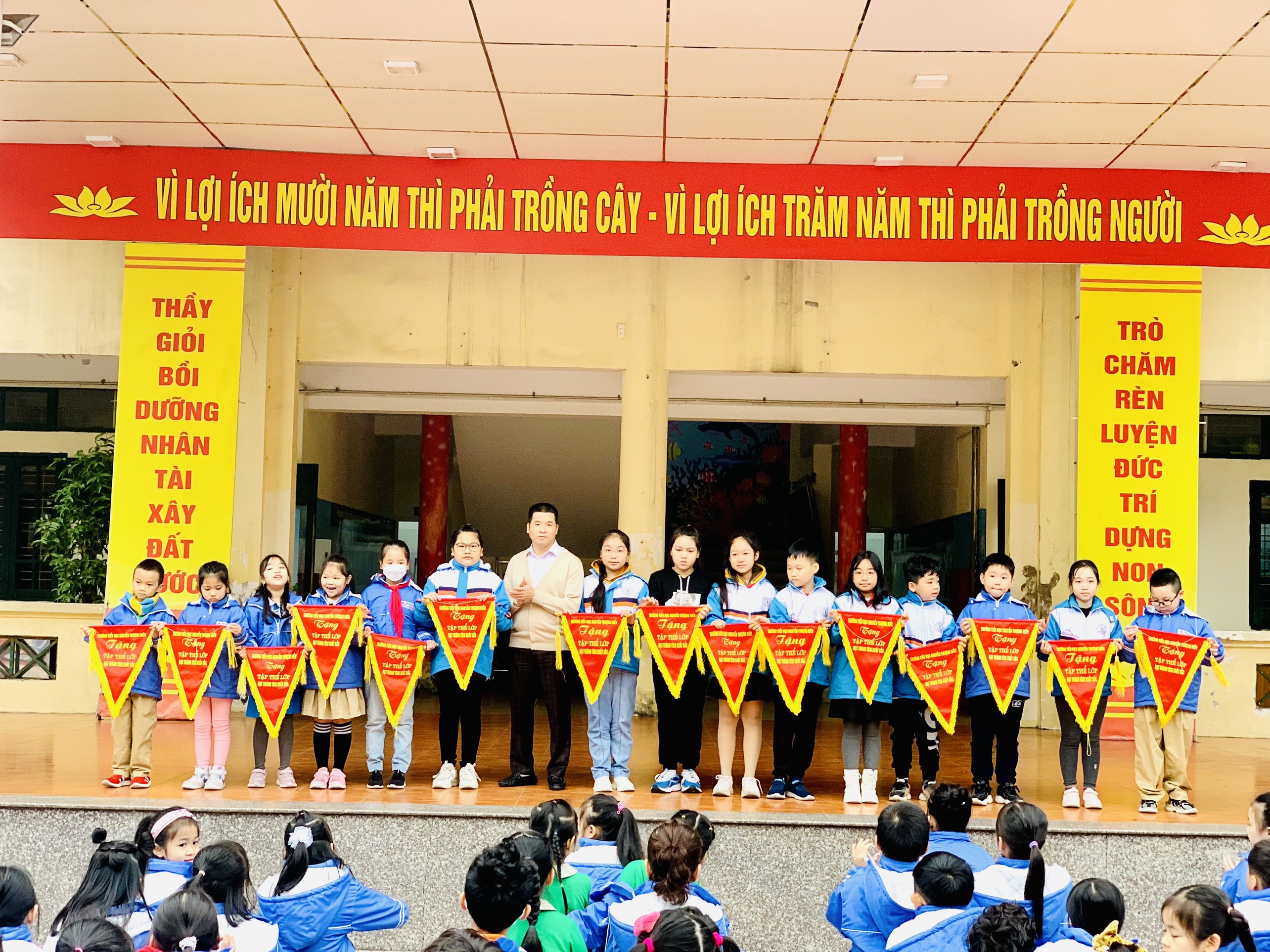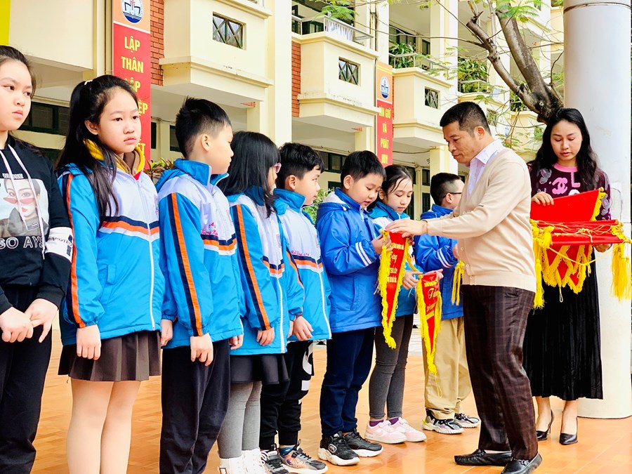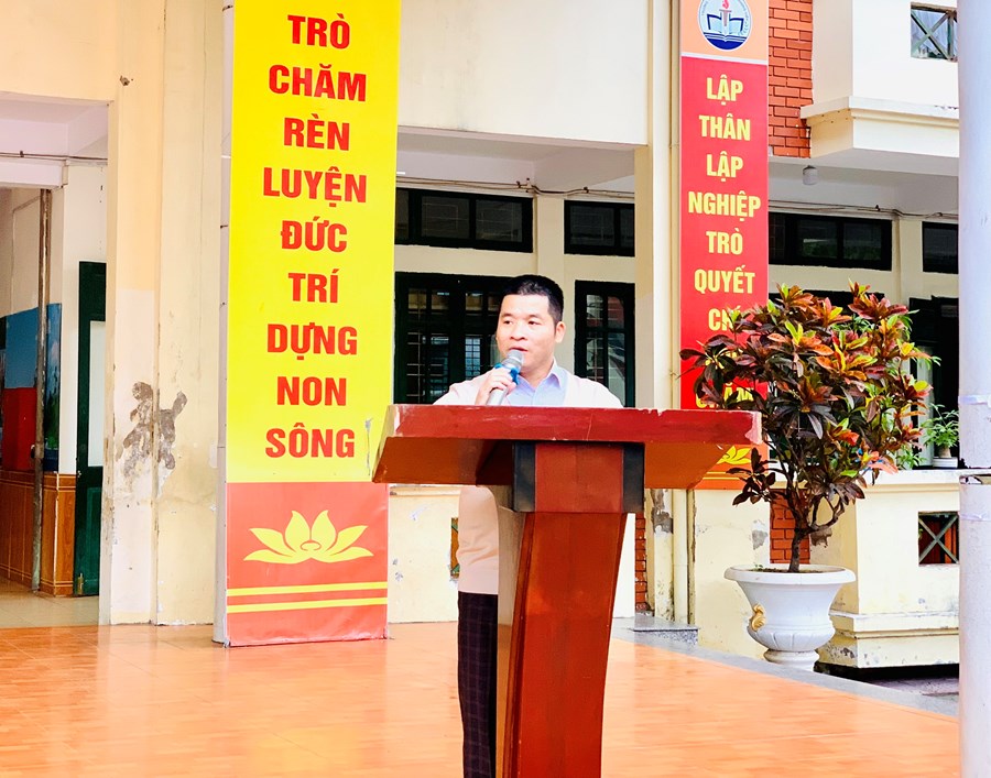 Thay mặt các thầy cô trong Ban giám hiệu nhà trường, thầy giáo Trần Nguyên Lâm đã có những lời nhận xét, động viên, lời chúc tốt đẹp tới các em học sinh toàn thể liên đội.