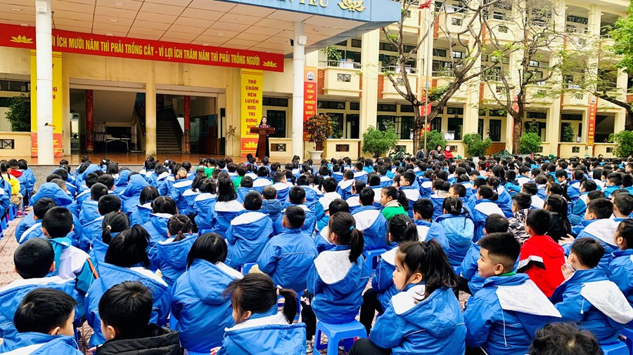 Sau nghi lễ chào cờ, liên đội được nghe cô Vũ Thị Thủy - Tổng phụ trách Đội đánh giá, tổng kết các công tác của tháng 1 về nền nếp, phong trào, chỉ rõ những ưu điểm, tồn tại cần khắc phục và triển khai kế hoạch hoạt động của tháng 2.