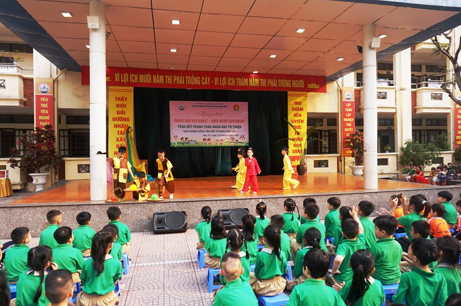 - Chào cờ đầu tháng tuyên truyền kỷ niệm 60 năm phong trào "Nghìn việc tốt" nhằm ôn lại truyền thống 60 năm phong trào "Nghìn việc tốt", cụ thể bằng phong trào mỗi tuần 1 câu chuyện đẹp, 1 tấm gương sáng, 1 cuốn sách hay. Đồng thời biểu dương các em đội viên, thiếu nhi của liên đội đã có thành tích xuất sắc trong học tập, rèn luyện. Giới thiệu đề xuất 2 gương "Dũng sĩ nghìn việc tốt" cấp Thành phố là em Trần Ngọc Gia Hân và Đỗ Minh Châu chi đội 5A8, 1 gương "Dũng sĩ nghìn việc tốt" cấp Trung ương là em Đỗ Minh Châu.