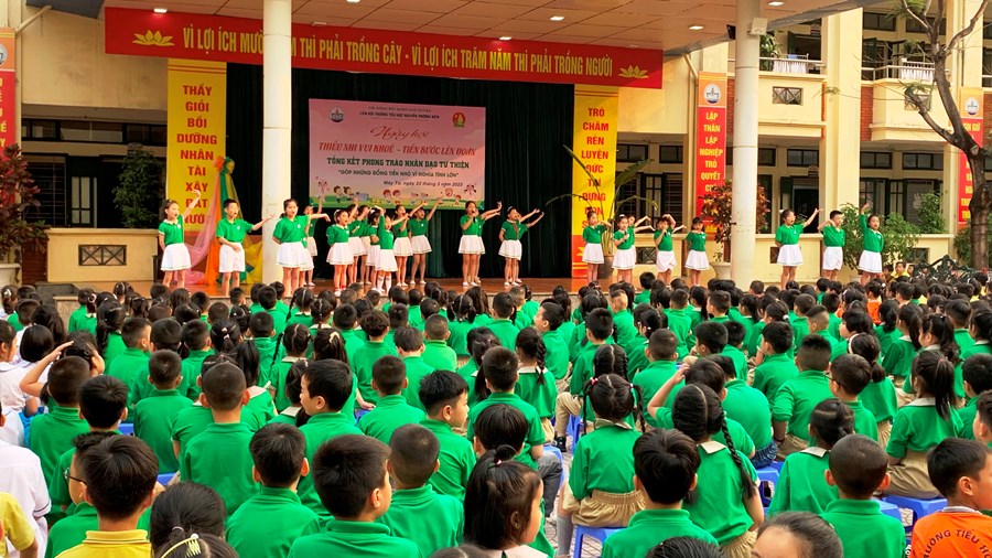 Với 100% các bạn học sinh tham gia ngày hội trong không khí vui tươi phấn khởi các em đội viên, nhi đồng và các thầy cô giáo cùng tham gia các hoạt động vui, khỏe như: biểu diễn văn nghệ, nhảy Flashmod, múa dân vũ…