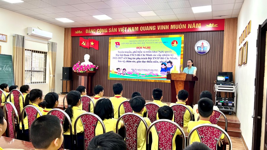 Buổi chiều cùng ngày liên đội tổ chức hội nghị tuyên truyền, phổ biến và triển khai Nghị quyết đại hội Đoàn các cấp và Đại hội Đoàn toàn quốc lần thứ XII trong công tác phụ trách Đội TNTP Hồ Chí Minh, bảo vệ, chăm sóc, giáo dục thiếu niên, nhi đồng. Tại hội nghị các em đội viên, thiếu nhi đã tiếp thu được những nhiệm vụ, giải pháp mà Nghị quyết Đại hội Đoàn các cấp đề ra về việc bảo vệ, chăm sóc, giáo dục thiếu niên nhi đồng.