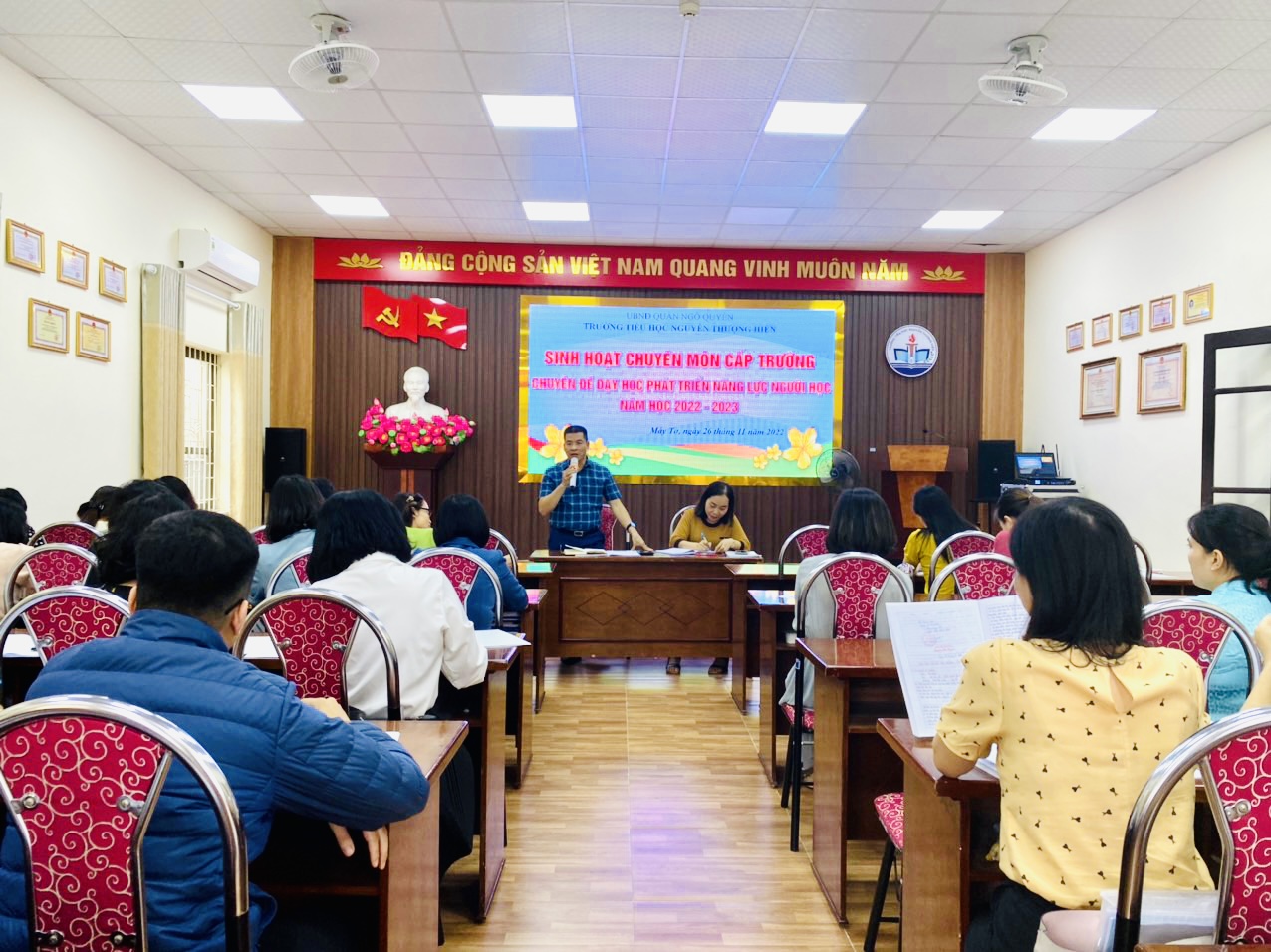 Tham gia buổi sinh hoạt chuyên môn có các đồng chí trong Ban giám hiệu và toàn thể các đồng chí giáo viên trong hội đồng sư phạm nhà trường.