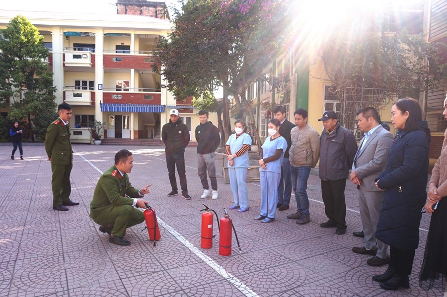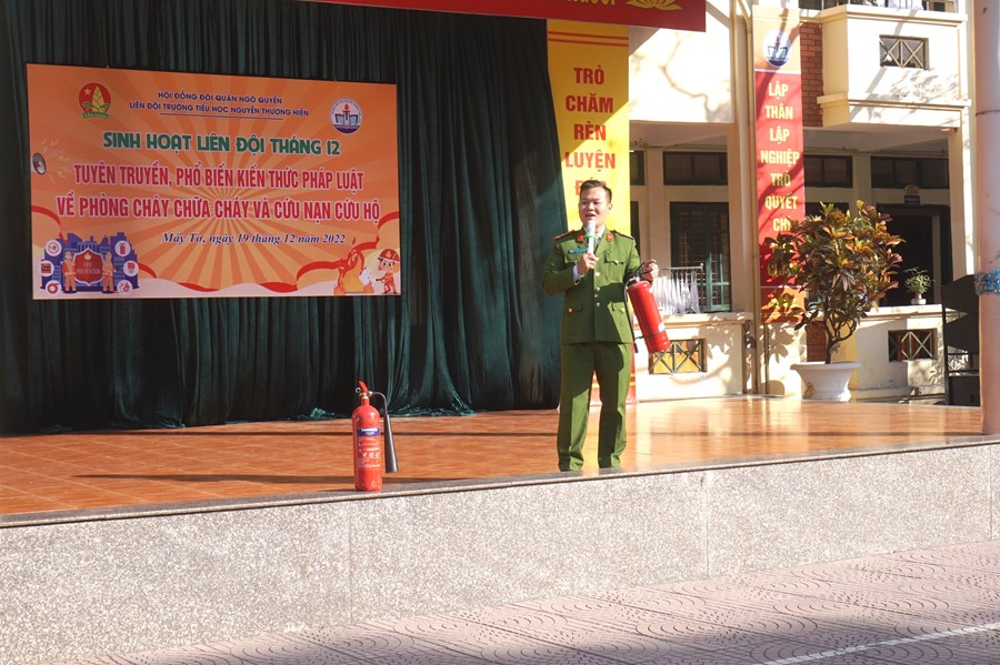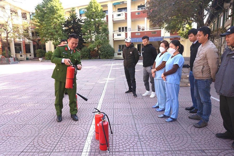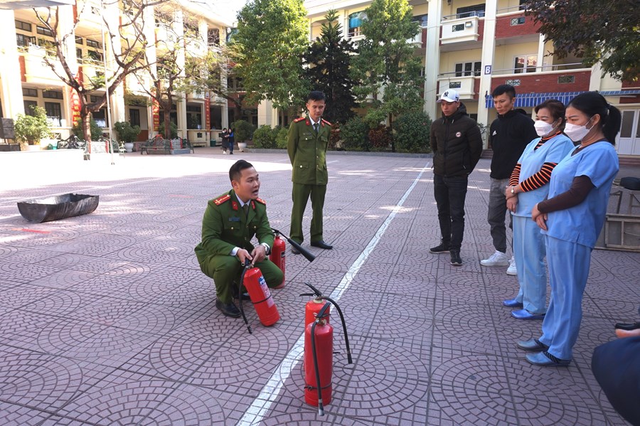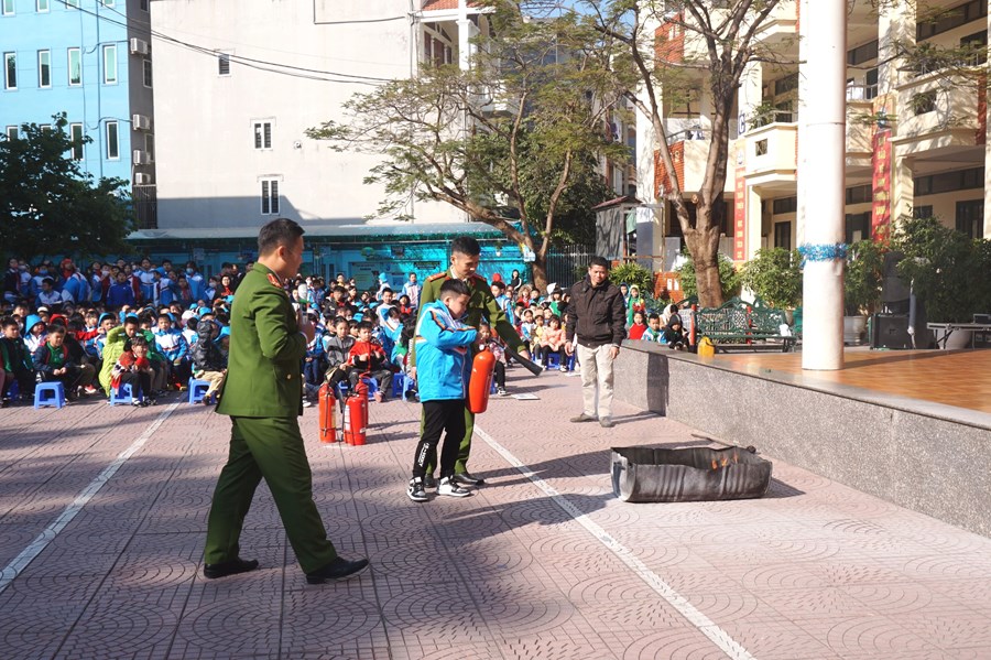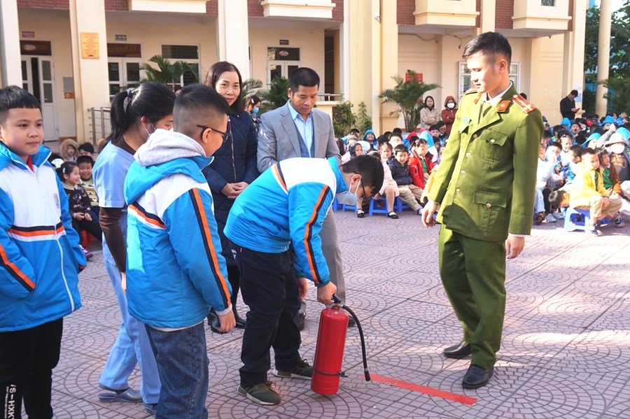 Tại buổi tập huấn, đồng chí Đỗ Quang Thái - Cán bộ Đội Cảnh sát PCCC và CNCH của công an Quận Ngô Quyền đã truyền đạt những kiến thức cơ bản về PCCC, một số nguyên nhân có thể gây cháy tại trường học và một số biện pháp PCCC tại trường học. Từ đó đ/c tư vấn cách sử dụng điện trong trường học, cách sử dụng các phương tiện chữa cháy tại chỗ và thực hành dập lửa bằng bình chữa cháy xách tay và một số kỹ năng thoát nạn an toàn trong đám cháy.