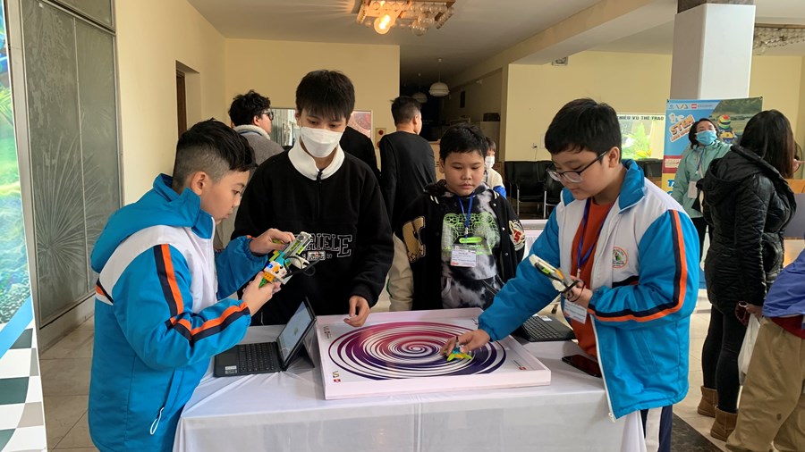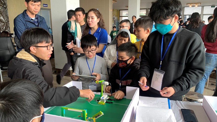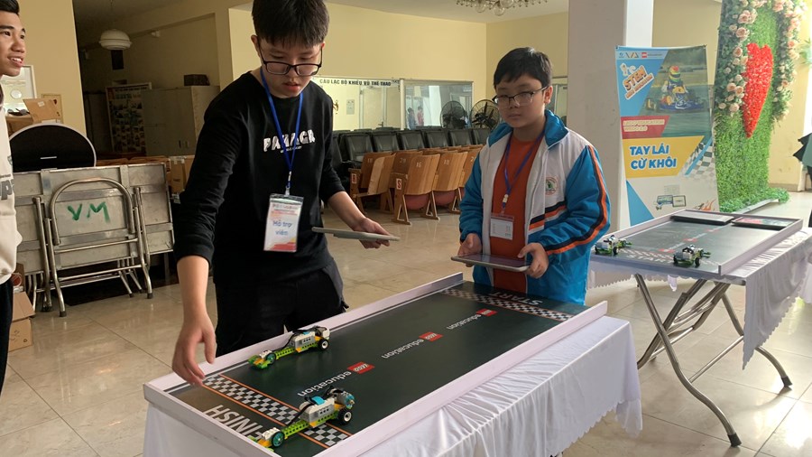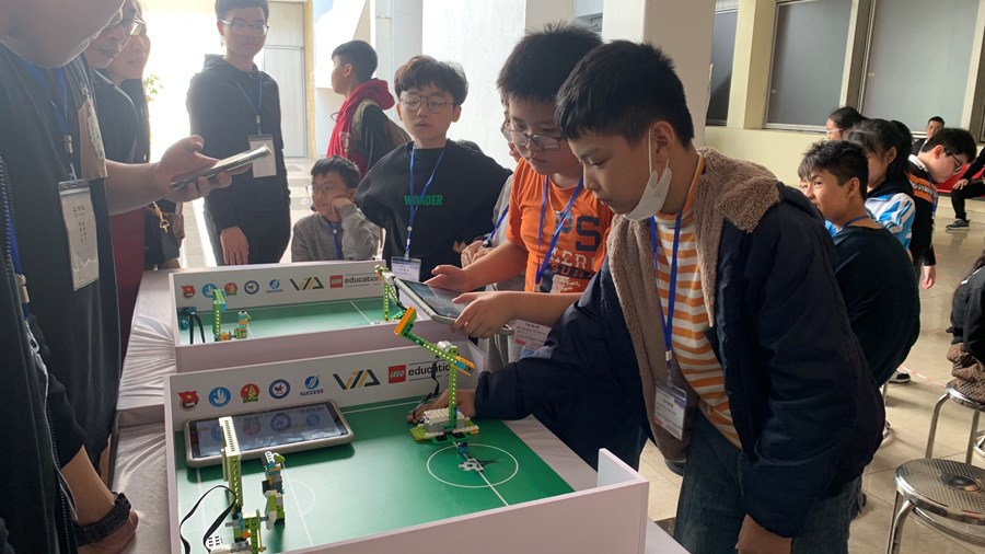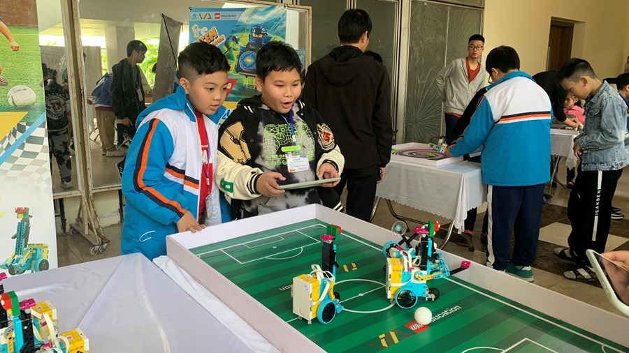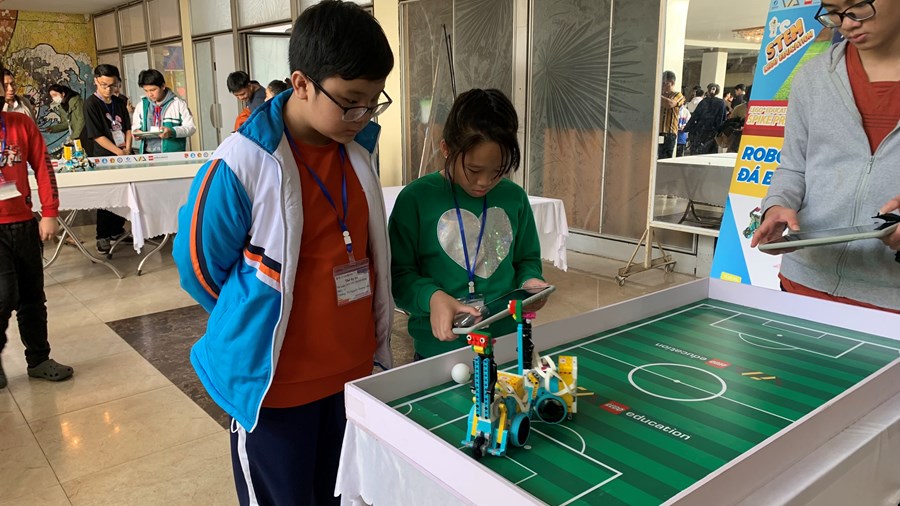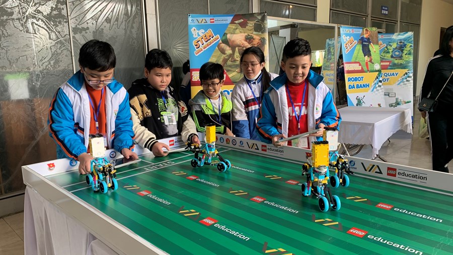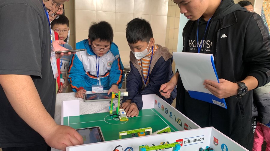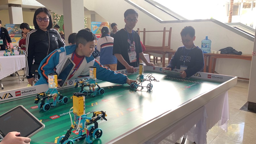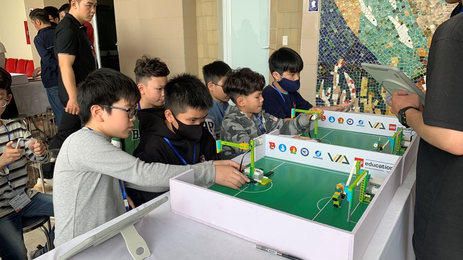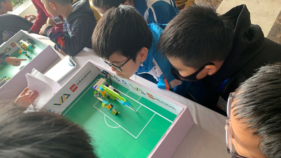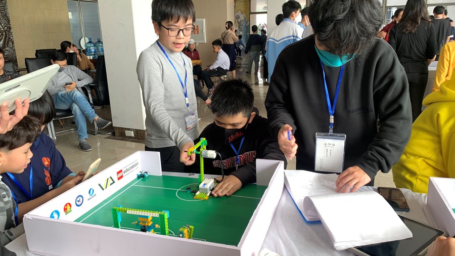 Các em tham gia dự thi bảng Bóng đá sử dụng công cụ LEGO Education WeD 2.0. Đây là lần đầu tiên các em tiếp cận, chưa từng học qua khoá học robotics song nhiều em đã thể hiện được sự chủ động, tự tin với công nghệ.