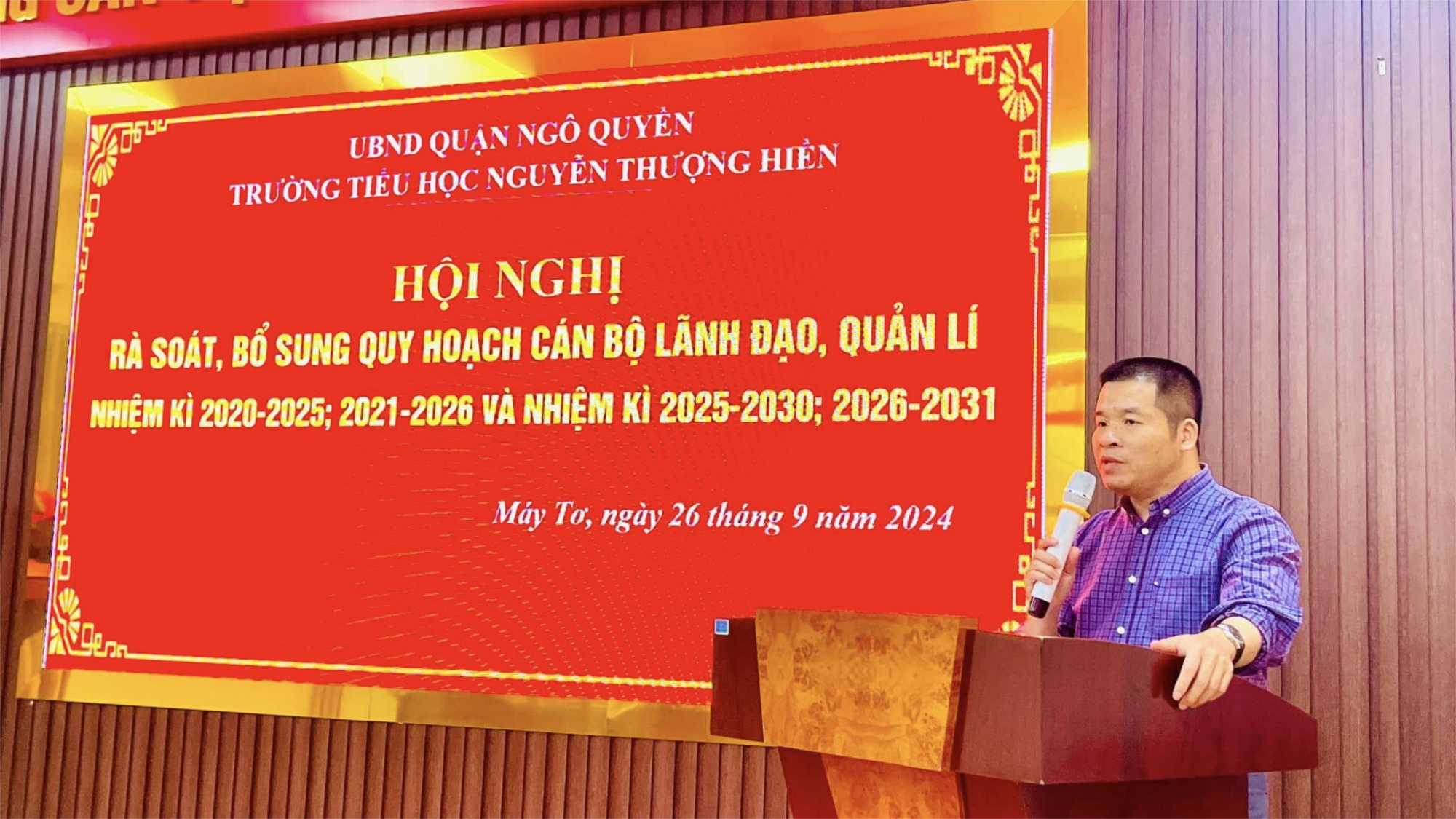 Thực hiện kế hoạch số 230-KH/QU ngày 16/9/2024 của Quận uỷ Ngô Quyền, ngày 26/9/2024 trường Tiểu học Nguyễn Thượng Hiền đã tổ chức Hội nghị rà soát bổ sung quy hoạch cán bộ lãnh đạo, quản lí nhiệm kì 2020-2025; 2021-2026 và nhiệm kì 2025-2030; 2026-2031.