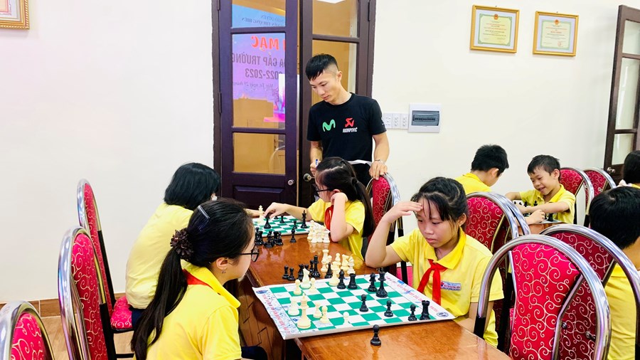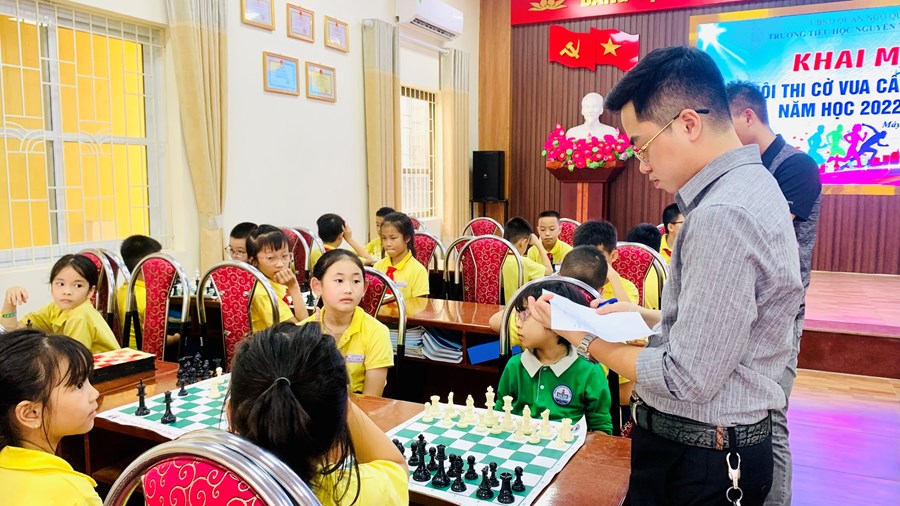 Để tiếp tục phát hiện, bồi dưỡng các em học sinh có năng khiếu thể thao, từ ngày 28-30/11/2022, nhà trường đã tổ chức thi cấp Trường các môn Cờ vua, bóng bàn, đá cầu,… Các em từ khối 1 đến khối 5 đã rất hào hứng và tích cực luyện tập để tham gia.