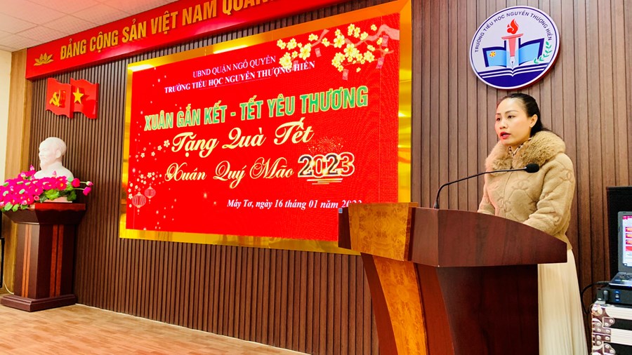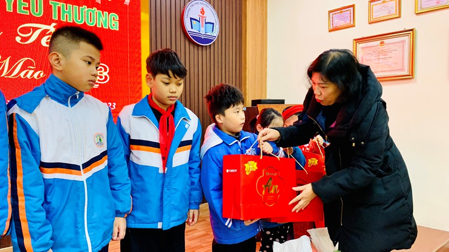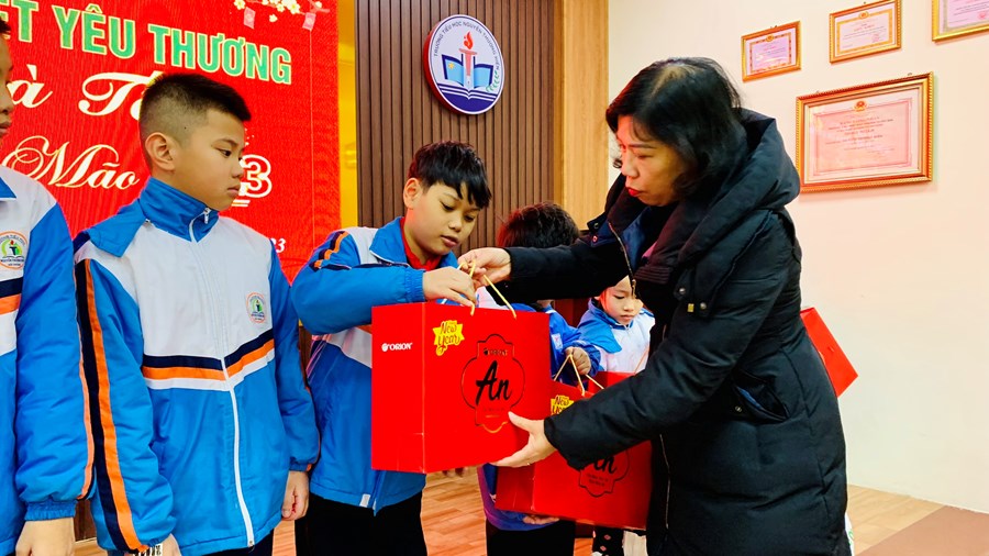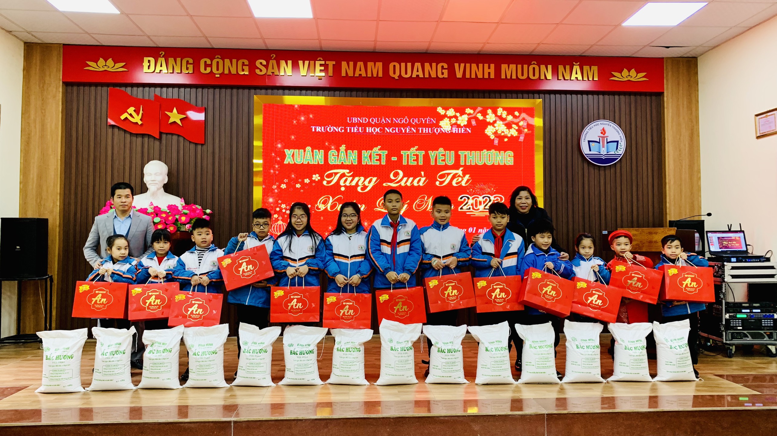 Tiếp nối những hoạt động “Xuân kết nối - Tết yêu thương”, chiều ngày 16/01/2023, trường Tiểu học Nguyễn Thượng Hiền tổ chức trao tặng quà Tết cho các em học sinh có hoàn cảnh khó khăn của nhà trường nhân dịp xuân Quý Mão 2023.