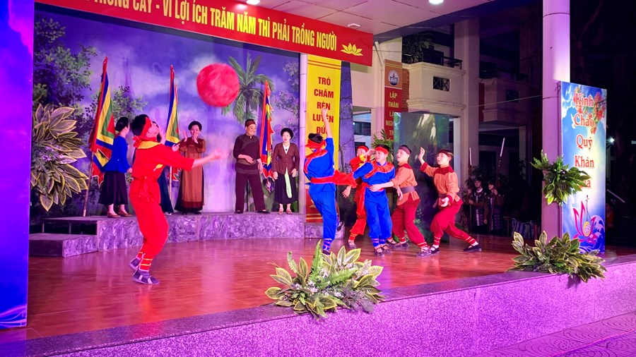 Tối ngày 07/3/2023, tại sân trường Tiểu học Nguyễn Thượng Hiền đã diễn ra buổi biểu diễn vở kịch “Lễ hội vật cầu”. Đây là chương trình được thực hiện bởi sự phối hợp giữa trường Tiểu học Nguyễn Thượng Hiền với Đoàn Cải lương Thành phố Hải Phòng.