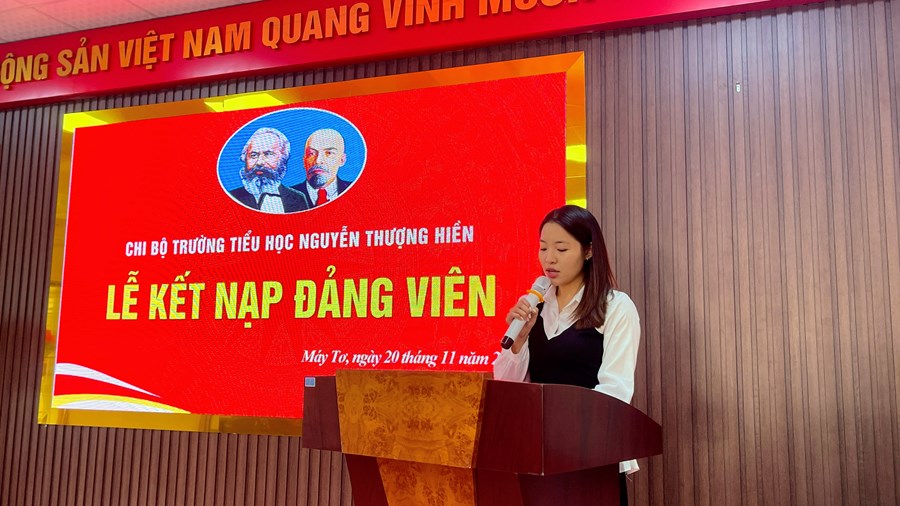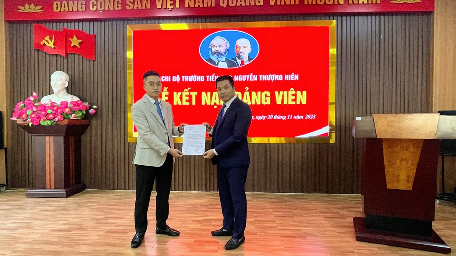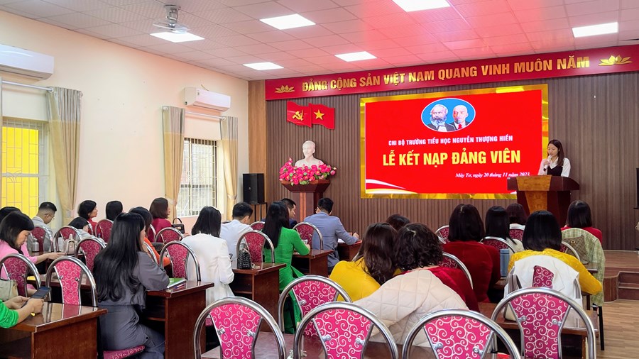 Bồi dưỡng, kết nạp Đảng viên mới là nhiệm vụ thường xuyên được Chi bộ Trường Tiểu học Nguyễn Thượng Hiền rất quan tâm. Việc giáo viên trẻ được kết nạp vào Đảng đã khẳng định sự cố gắng trong học tập, tu dưỡng, rèn luyện của đồng chí. Đây chính là tấm gương sáng để các giáo viên trẻ tiếp theo của trường tiểu học Nguyễn Thượng Hiền học tập.