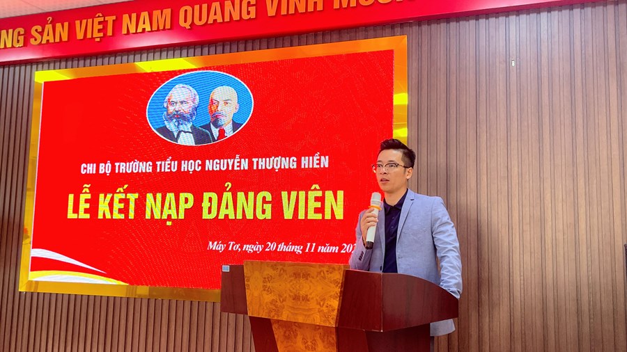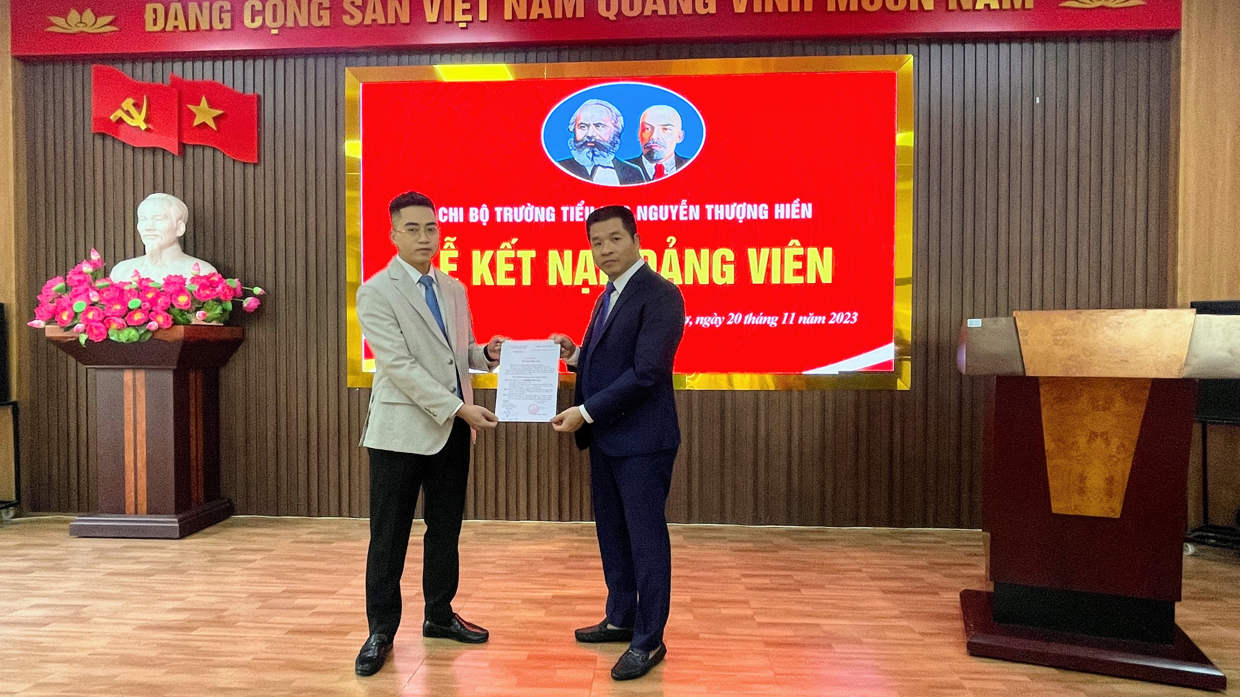 Thực hiện sự chỉ đạo của Đảng ủy phường Máy Tơ, Nghị quyết Đại hội Chi bộ Trường tiểu học Nguyễn Thượng Hiền về việc phát triển Đảng viên. Sáng ngày 20/11/2023, Chi bộ trường Trường Tiểu học Nguyễn Thượng Hiền đã long trọng tổ chức lễ kết nạp Đảng viên mới đối với 1 quần chúng ưu tú Nguyễn Trần Phúc, giáo viên khối 4.