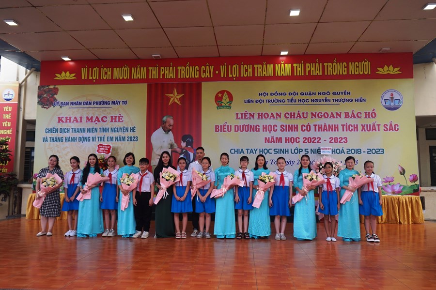 Thực hiện kế hoạch năm học 2022-2023 của trường Tiểu học Nguyễn Thượng Hiền, sáng ngày 26/5/2023 trường Tiểu Học Nguyễn Thượng Hiền đã tổ chức Liên hoan Cháu ngoan Bác Hồ; Biểu dương học sinh có thành tích xuất sắc trong năm học và chia tay học sinh lớp 5 niên khóa 2018 - 2023.