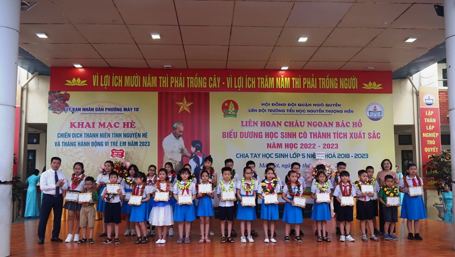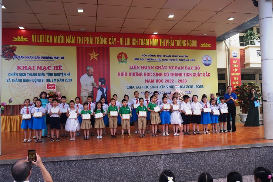 Nhà trường đã biểu dương và trao thưởng 20 tập thể xuất sắc; 35 đại diện Cháu ngoan Bác Hồ xuất sắc; các học sinh đạt thành tích cao trong cuộc thi các cấp và hội nhập của năm học 2022 - 2023.