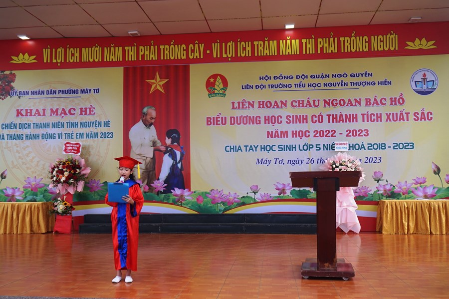 Buổi Liên hoan cháu ngoan Bác Hồ, biểu dương học sinh có thành tích xuất sắc năm học 2022 – 2023 và chia tay học sinh lớp 5 niên khóa 2018 -2023 đã diễn ra trong không khí vui tươi, phấn khởi, hân hoan nhưng cũng đầy những cảm xúc nghẹn ngào. Chúc các thầy cô giáo, các bậc phụ huynh mạnh khỏe, hạnh phúc, chúc các em học sinh có một mùa hè thú vị và bổ ích.