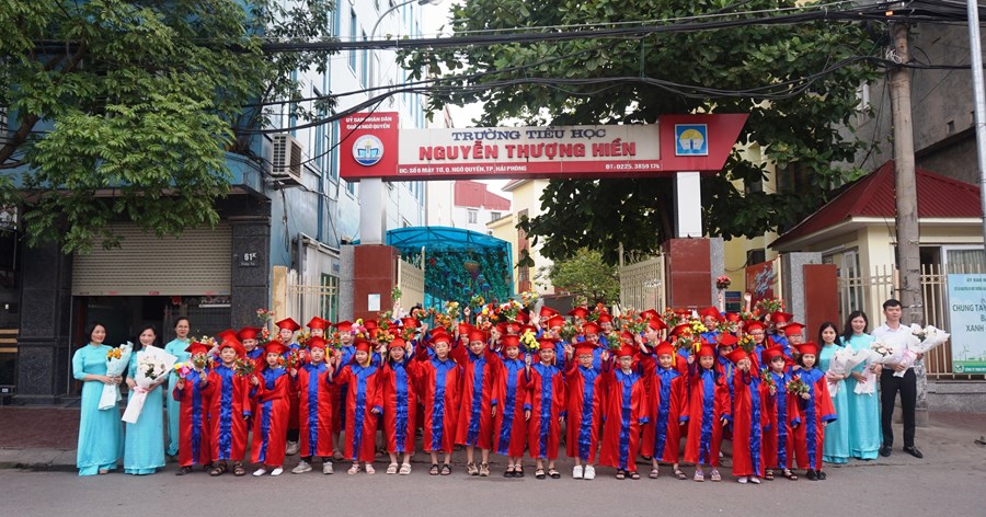 Các em học sinh sau một năm học tập và cố gắng sẽ được vui chơi nghỉ ngơi. Nhưng mùa hè đến cũng là thời điểm chia tay học sinh khối 5 khóa 2018-2023 đầy xúc động. Một tuổi thơ gắn bó với mái trường, thầy cô và bạn bè. Khi tiếng ve râm ran gọi hè, khi hoa phượng đỏ chói ở một góc sân trường, cũng là lúc chúng ta nói lời chia tay với các em học sinh khối 5 và dành nhiều tình cảm cùng những lời chúc tốt đẹp nhất cho các em. Lời phát biểu của thầy hiệu trưởng Trần Nguyên Lâm, lời dặn dò của các thầy cô giáo trong buổi lễ đã để lại trong các em biết bao cảm xúc khó tả và ghi dấu ấn khó quên trong tâm hồn mỗi bạn học sinh. Chúc các em luôn chăm ngoan, học giỏi, rèn luyện tốt, xứng đáng là những lứa học sinh xuất sắc trưởng thành từ chiếc nôi Nguyễn Thượng Hiền thân yêu.