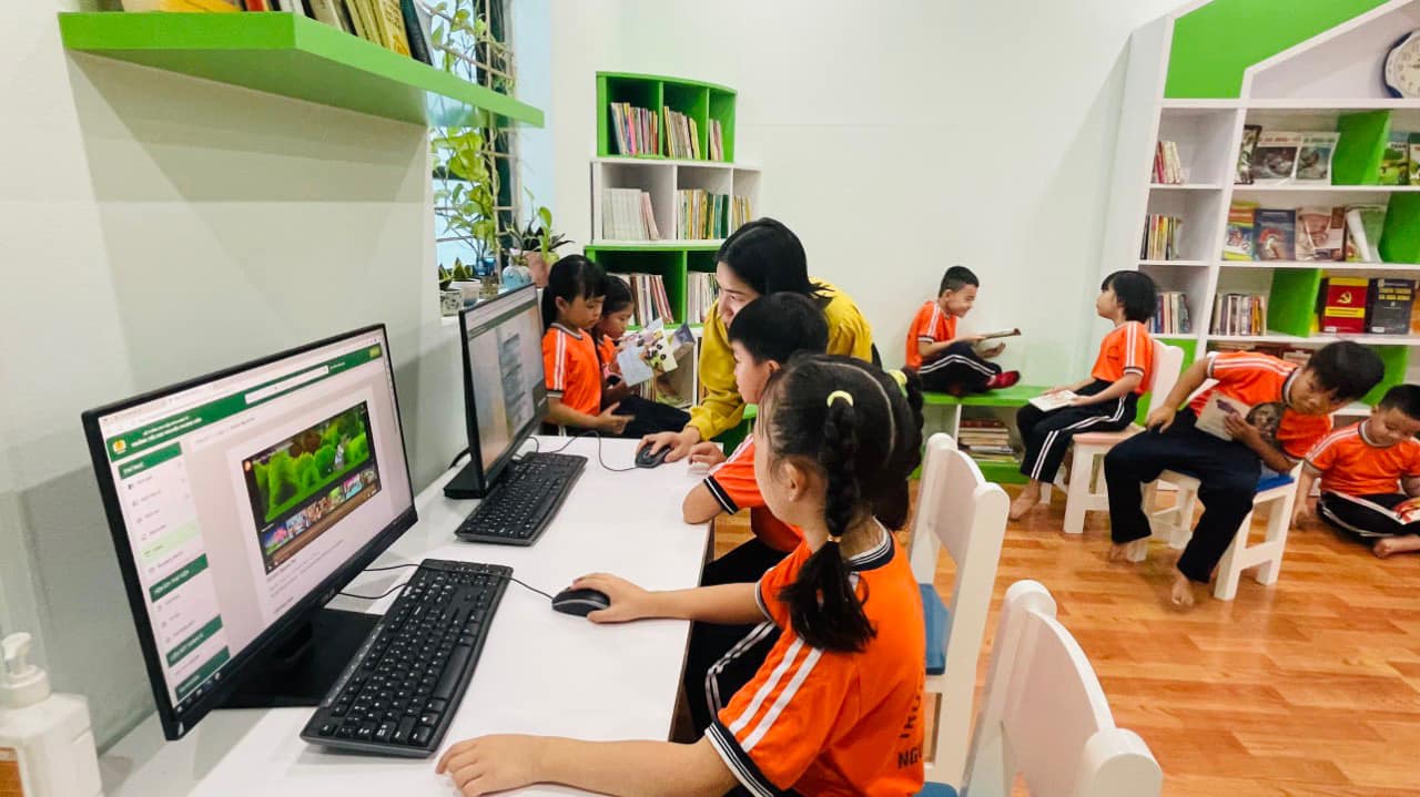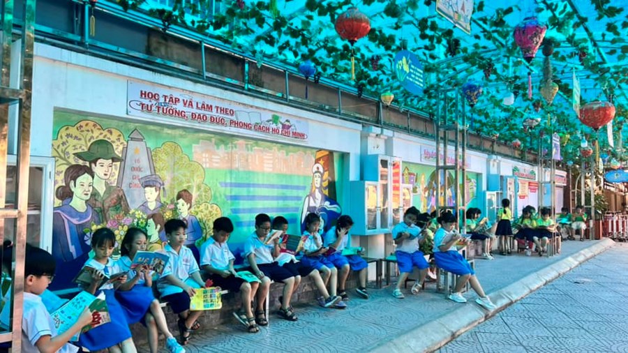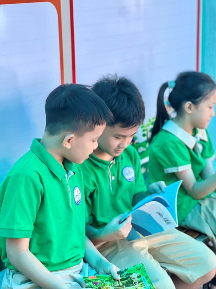 Hoạt động tuyên truyền tại các lớp học, xây dựng thư viện đọc chung. Thư viện trong nhà và thư viện xanh ngoài trời được phân lịch và mở cửa thường xuyên phục vụ nhu cầu đọc của học sinh.